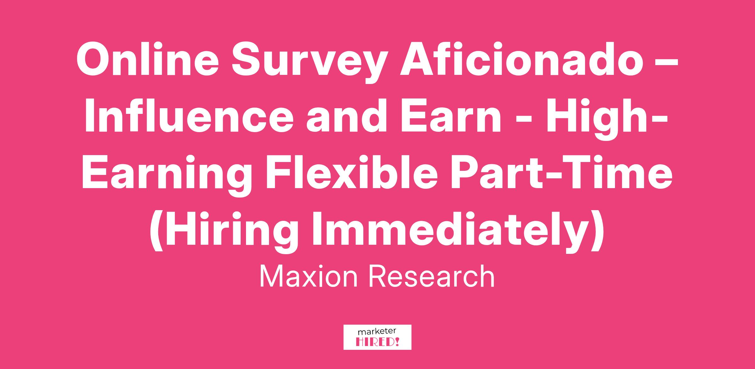 Online Survey Aficionado – Influence and Earn - High-Earning Flexible Part-Time (Hiring Immediately)