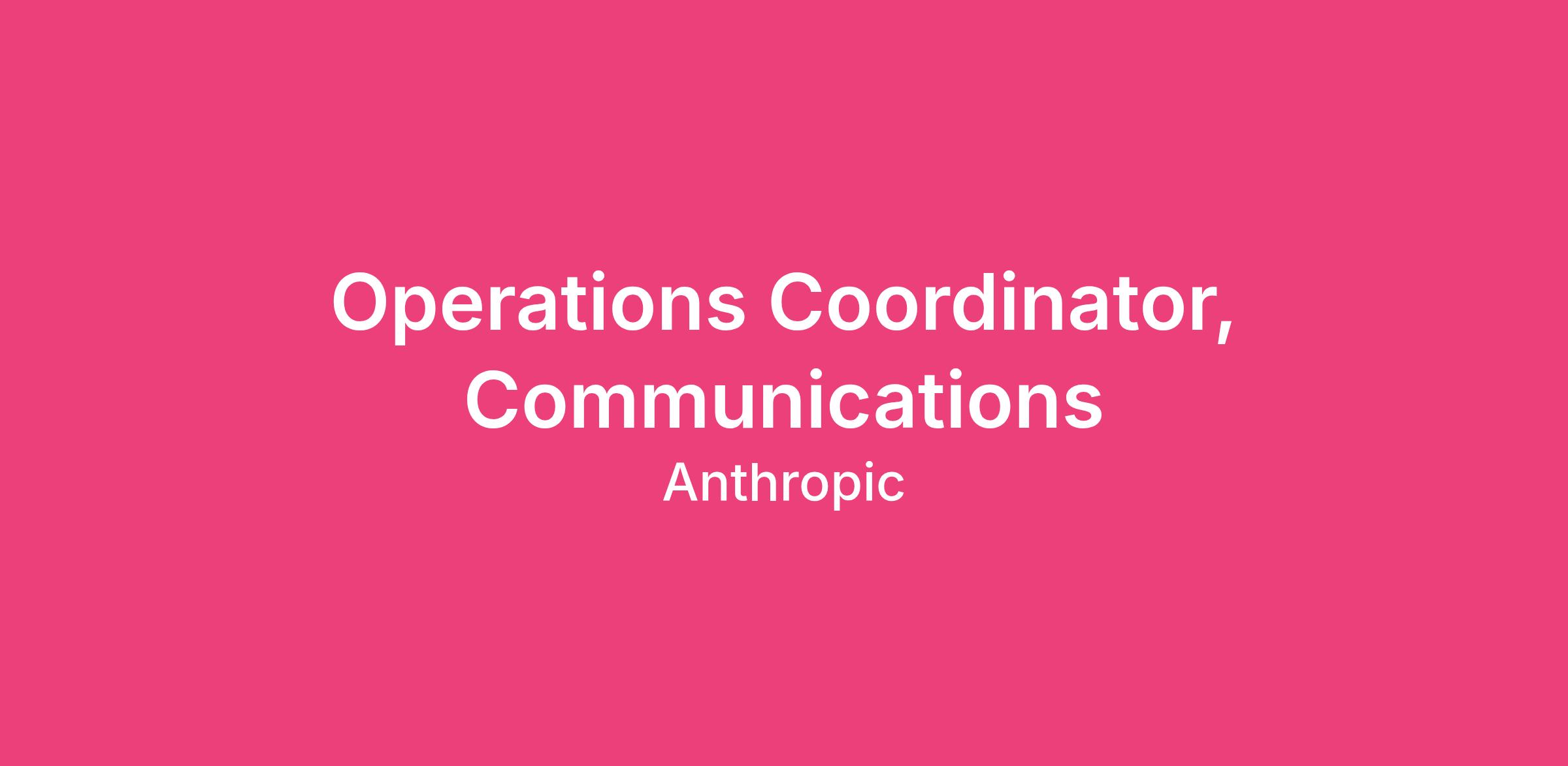As an Operations Coordinator on Anthropic's Communications team, you'll be the operational backbone that enables our communications efforts to run smoothly and scale effectively. In this role, you'll build and refine the systems, processes, and tools that help our team tell Anthropic's story to the world. You'll work across our communications functions—including external and internal communications, brand communications, and editorial —to ensure we're operating efficiently as we navigate the fast-paced world of AI.