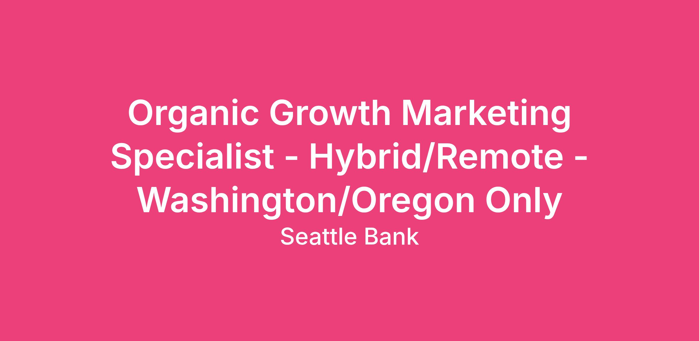 Organic Growth Marketing Specialist - Hybrid/Remote - Washington/Oregon Only