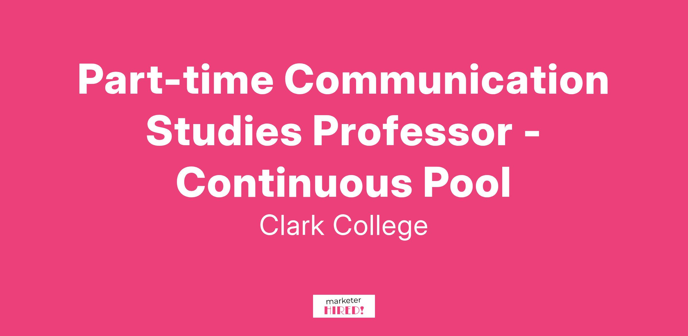 Clark College is currently accepting applications for a part-time Communication Studies Professor. The successful candidates must be flexible and available to fulfill department needs. Department and college service work is expected with the position (as assigned by the Division or college) to support the institutional mission and goals, foremost being student success and retention.