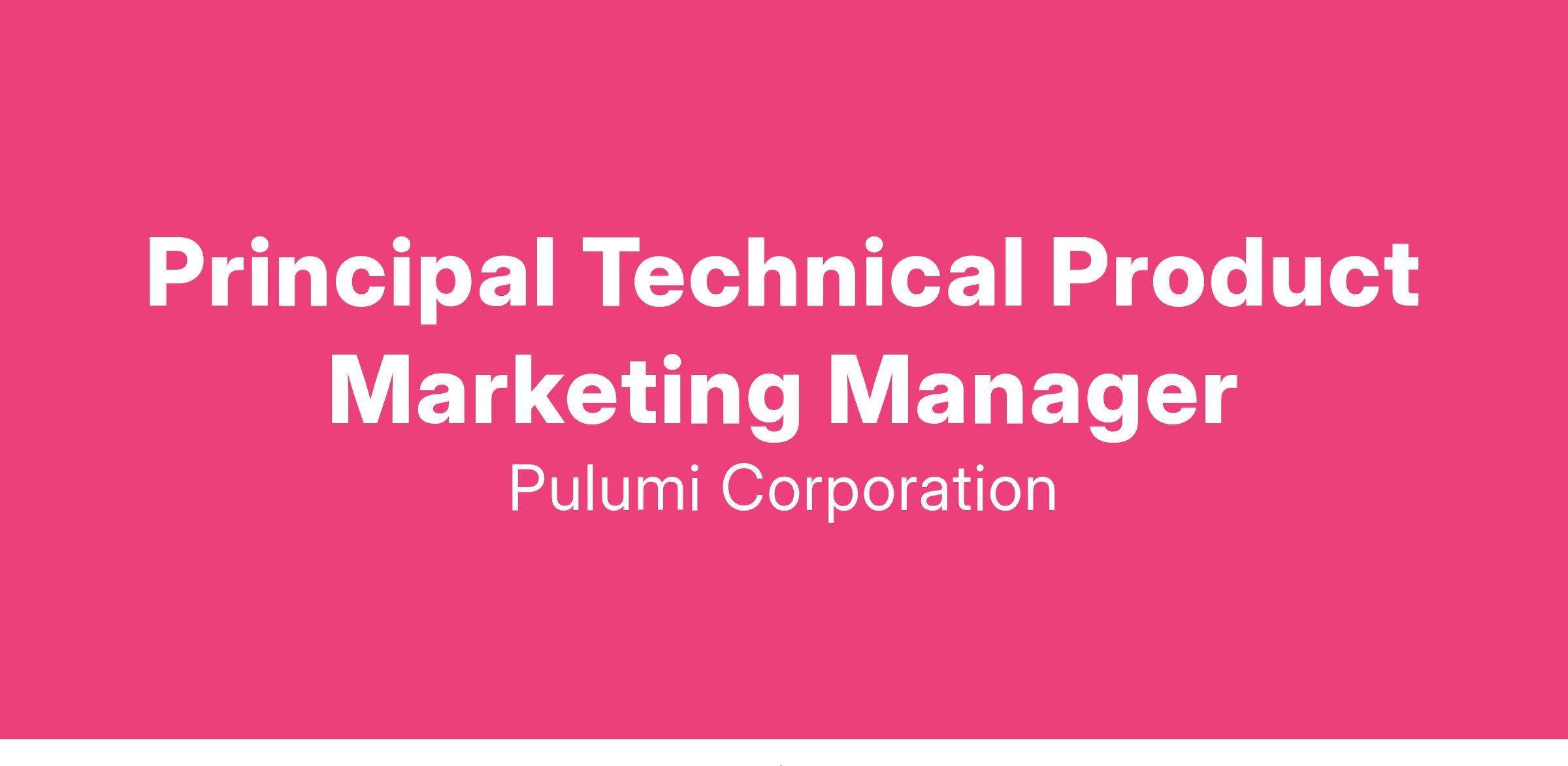 Pulumi is looking for an experienced Principal Technical Product Marketing Manager to articulate the value of Pulumi's products to the world. You will be a part of realizing a vision that empowers every developer to program the cloud.