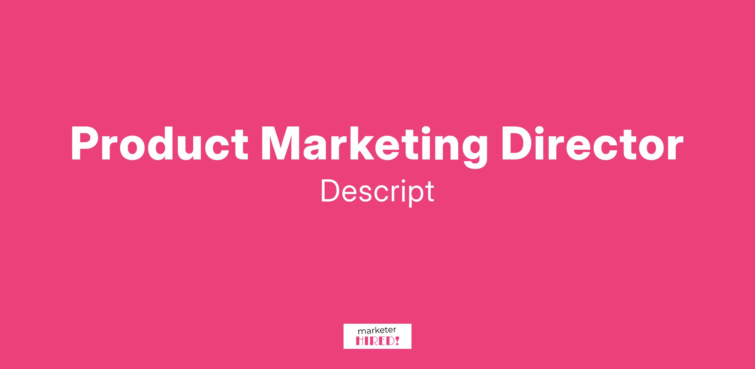 As a Product Marketing Director at Descript, you will play a pivotal role in bringing our video content suite to new customers, and helping existing customers get the most out of their subscription. Collaborating closely with cross-functional teams, you will define distinctive and memorable ways to position Descript’s offering, and develop campaigns that bring to life our most differentiating features. Additionally, you will represent the voice of prospect and customer communities—driving internal understanding of their use cases, motivations, and needs. Your work will help us deepen credible relationships with new and existing customers.This role directly manages multiple Product Marketers, and reports to the Head of Brand.What You’ll Do