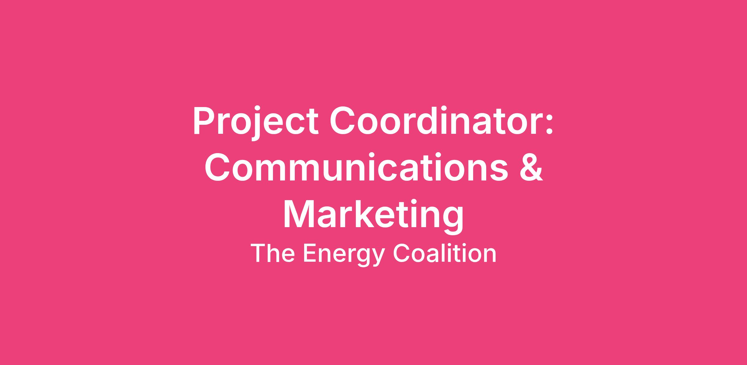 Are you ready to create a brighter energy future as part of a passionate and purpose-driven organization? The Energy Coalition (TEC) seeks a full-time Project Coordinator (PC) on our Marketing, Education, and Outreach (ME&O) team with a specic focus on communications and marketing.