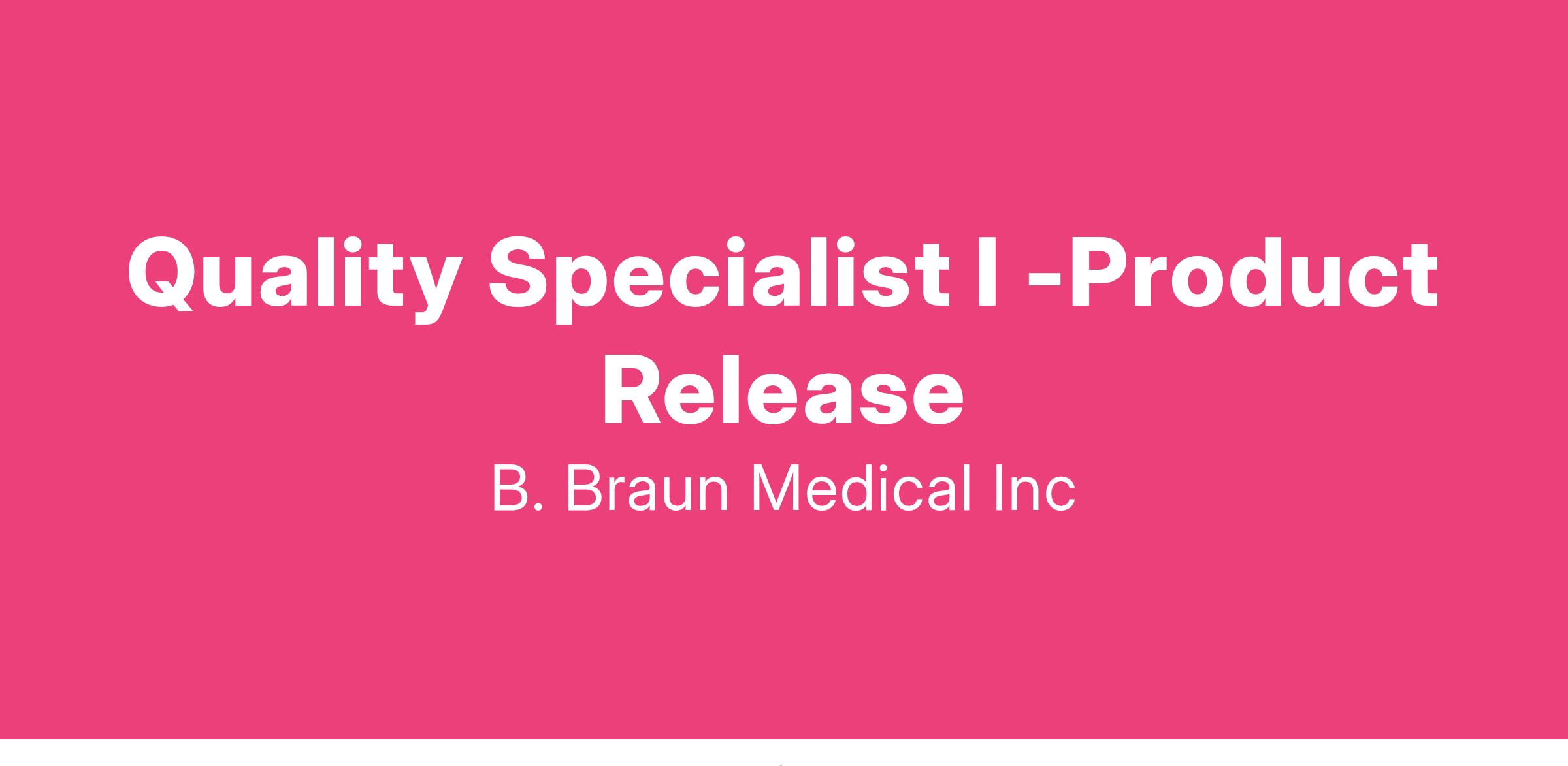 B. Braun Medical, Inc. Quality Specialist I -Product Release US-CA-Irvine