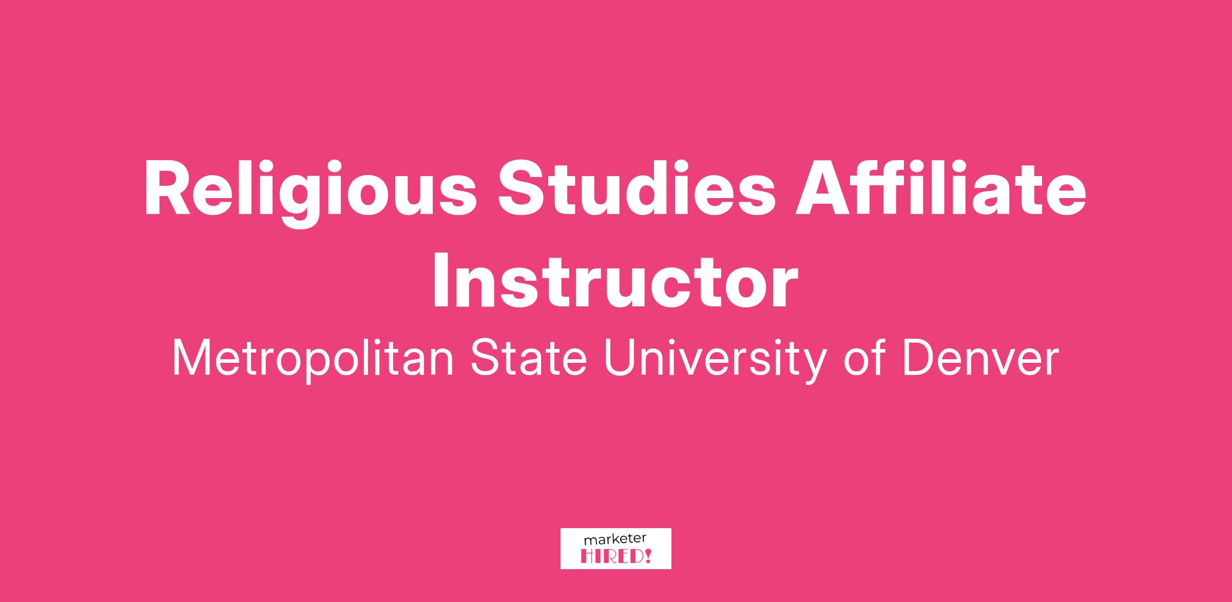 The Department of Philosophy at Metropolitan State University of Denver (MSU Denver) invites applications for part-time affiliate faculty teaching positions. Instructors will teach one to three classes per semester. We have particular needs for qualified instructors to teach RLG 1040 - Asian Religions as well as RLG 1050 - Judaism, Christianity, Islam. There are opportunities to teach both in person and online.