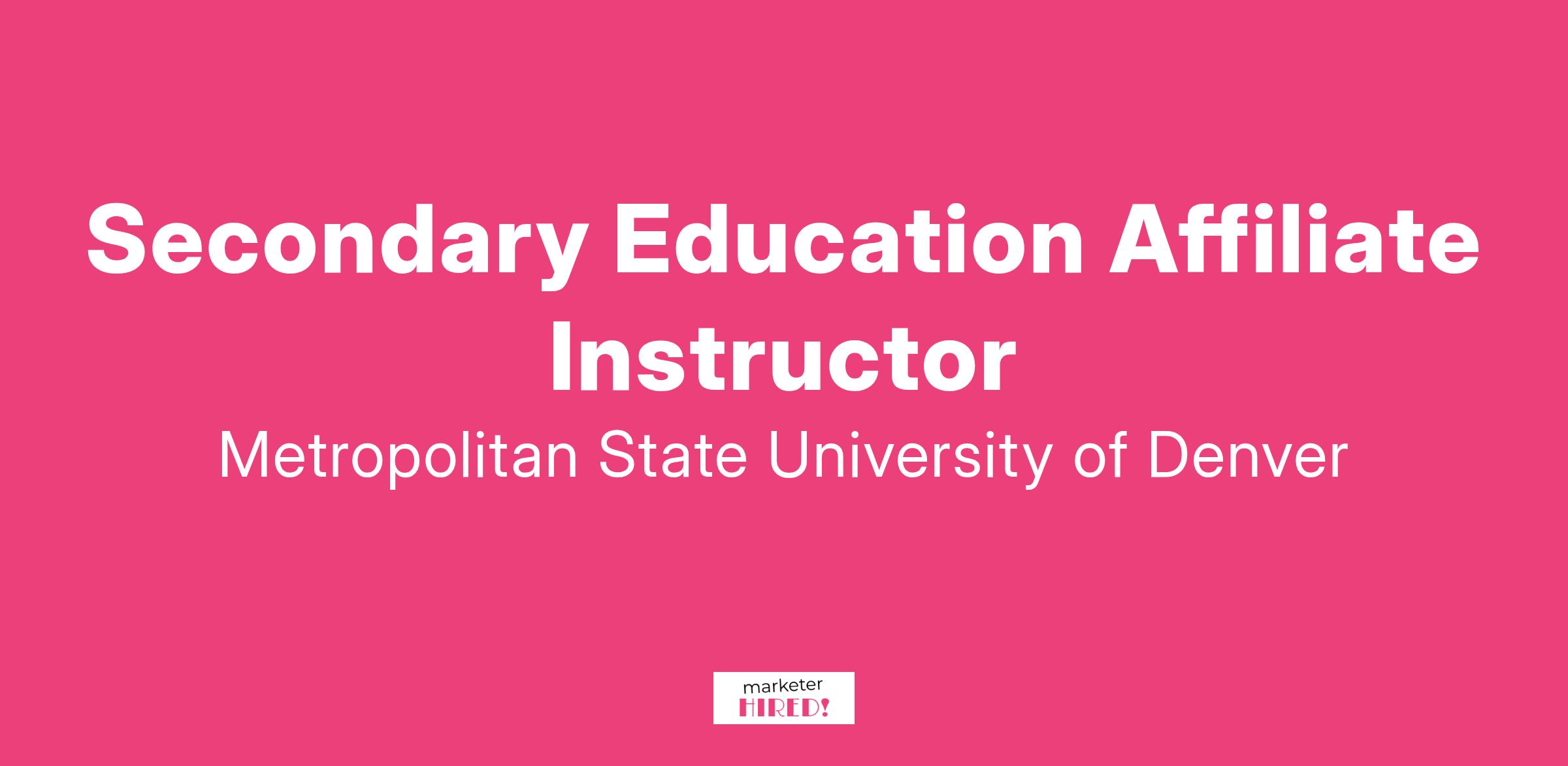 The Department of Secondary Education, K-12 Education and Educational Technology at Metropolitan State University of Denver (MSU Denver) invites applications for part-time affiliate faculty teaching positions. This listing is for potential future needs for part time affiliate instructors of Secondary Education.