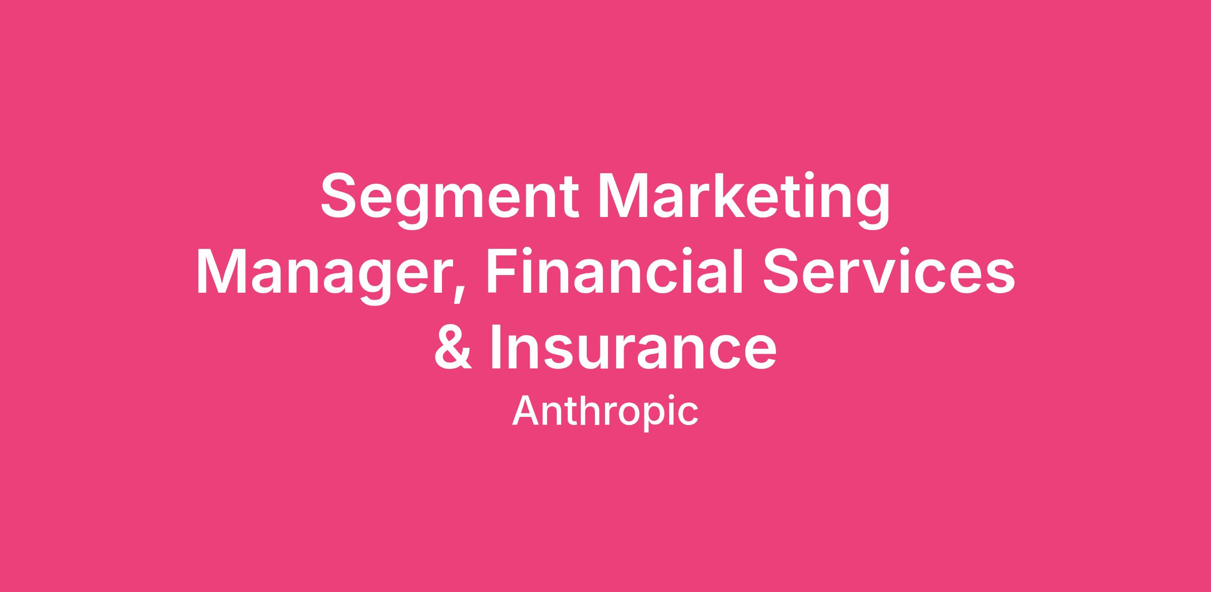 As a Segment Marketing Manager for Financial Services & Insurance at Anthropic, you will own the end-to-end demand marketing strategy for one of the most consequential verticals in our go-to-market motion. Financial services and insurance organizations are among the earliest adopters of enterprise AI, and this role sits at the intersection of deep industry expertise and Anthropic's mission to build safe, reliable AI systems that deliver real business value.