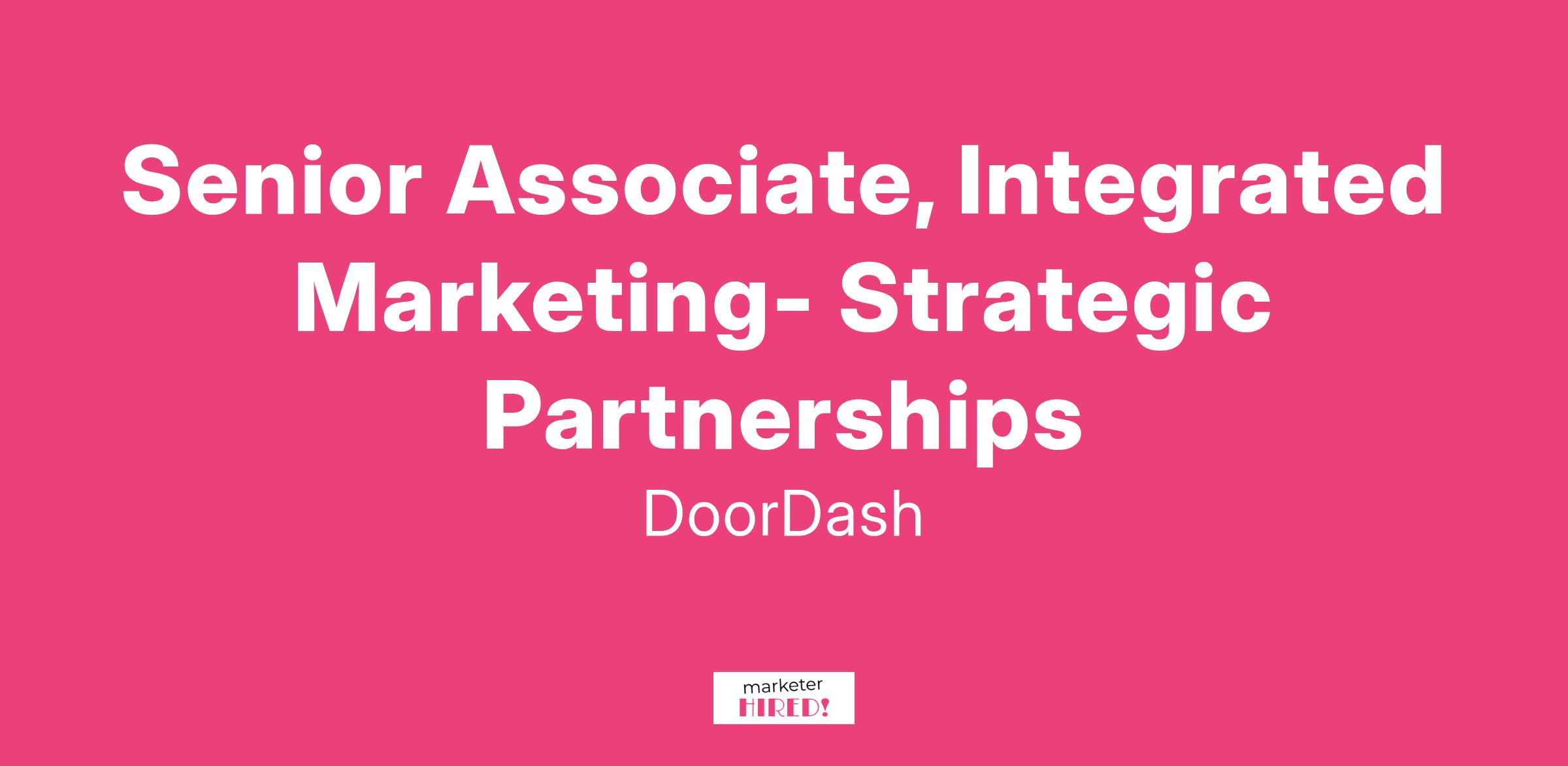 We are looking for an experienced Senior Associate, Integrated Marketing to execute highly engaging and innovative strategies to fuel our business growth. In this role, you will use insights to develop consumer-first strategies to launch and sustain strategic partnerships. This involves creating and executing integrated marketing campaigns built against both external partner and DashPass goals. You will work closely with cross-functional teams to ensure we are maximizing DoorDash value from our partner relationships, driving our business forward and serving consumers’ needs. You will report into the Sr Integrated Marketing Manager, DashPass Strategic Partnerships.