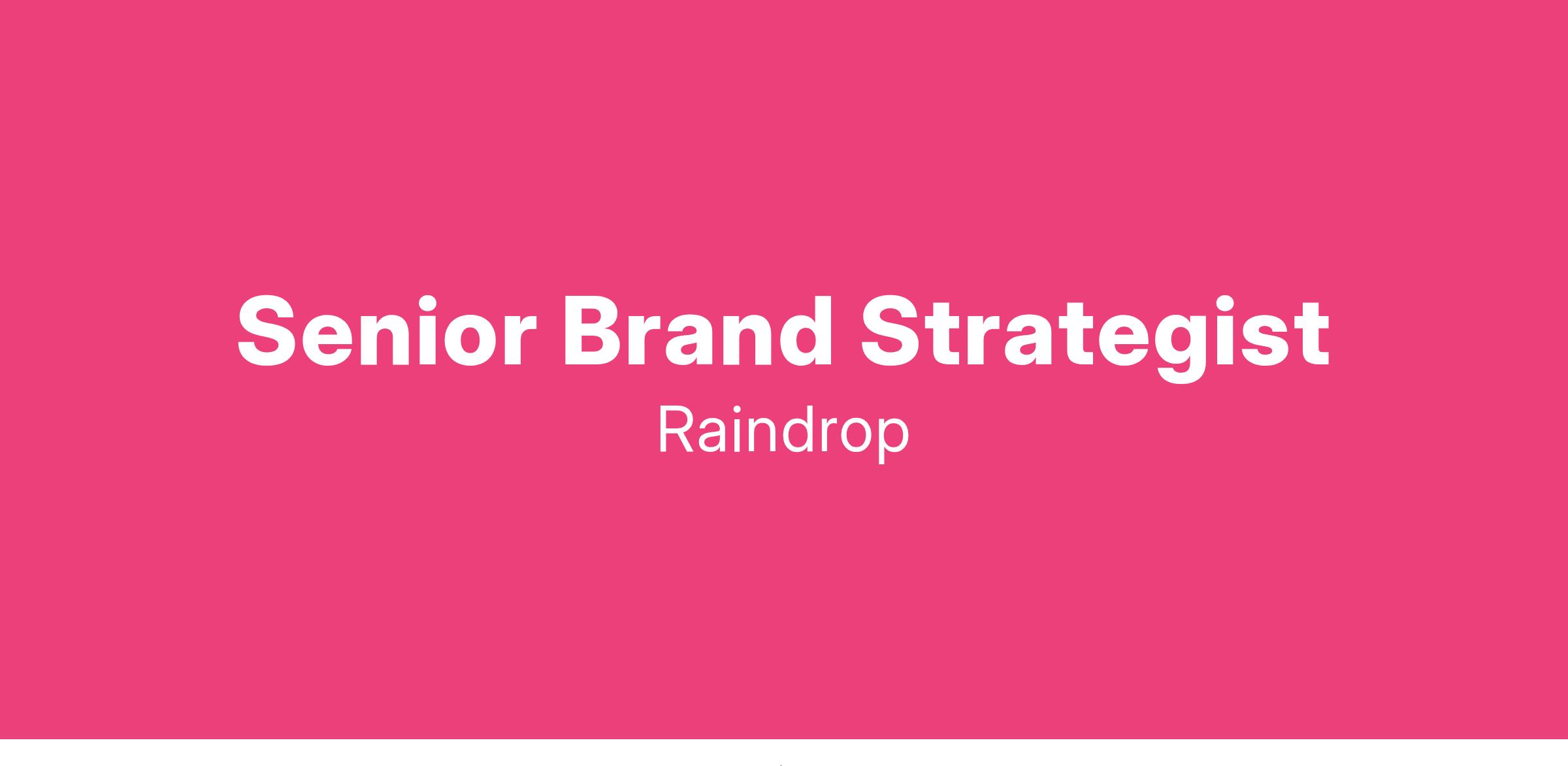 Raindrop is a fast-growing agency and the leader in creating Marketing People Love. We are looking for a Sr. Brand Strategist to join our Strategy Team who is a talented and dynamic brand and marketing expert ready to assist various teams using a blend of creative, strategic, and analytical expertise.