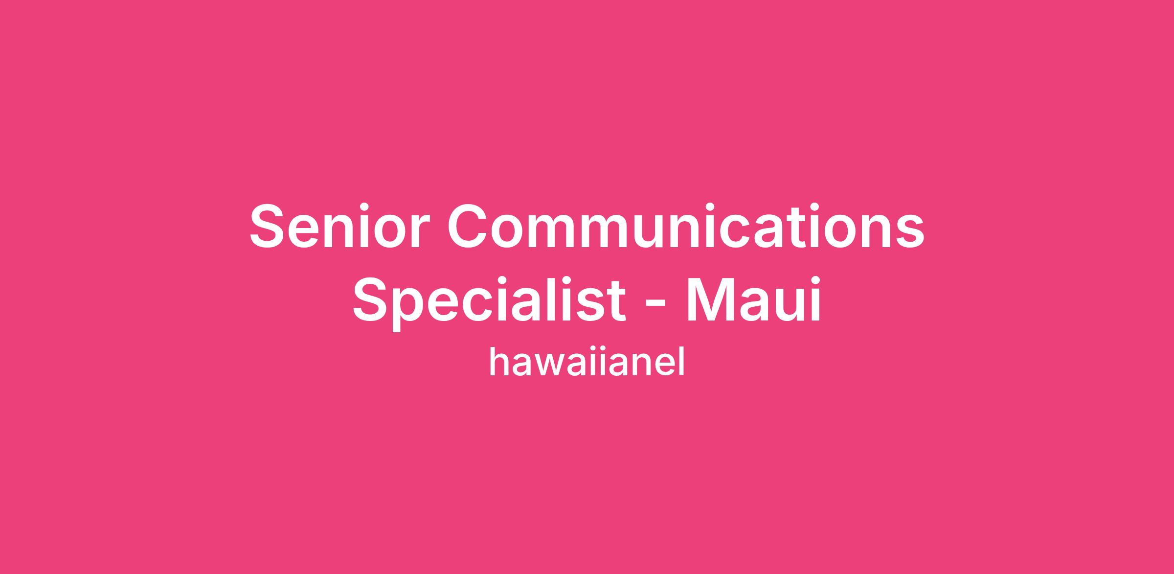 Senior Communications Specialist - Maui