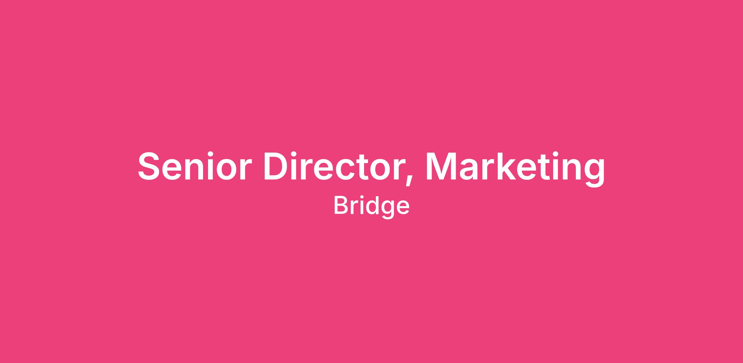 BRIDGE is currently seeking a Senior Director of Marketing who will be responsible for leading our marketing strategy and execution. The ideal candidate will be be a visionary leader with a deep understanding of our business, scaling B2B marketing organizations, and driving pipeline generation all while elevating our brand awareness, and enabling sales success in a fast-paced, high-growth technology environment.
