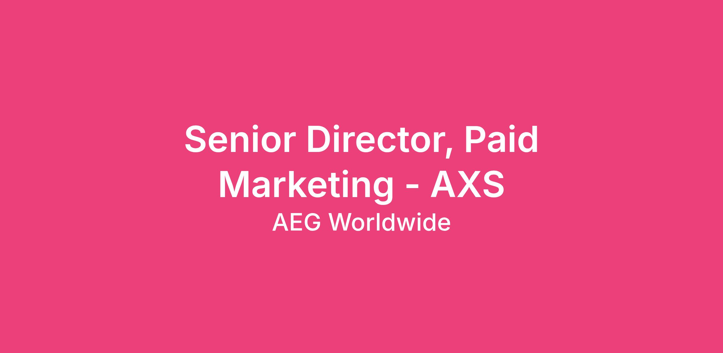 AXS is seeking a Senior Director, Paid Marketing, to join our team in Los Angeles, CA. This role will lead the company's paid acquisition strategy, overseeing Paid Search, Paid Social, and Programmatic Display with a strict focus on data-driven decision-making, measurement, and ROI optimization. This role is responsible for maximizing efficiency and revenue growth from a $5M+ annual budget, ensuring that every marketing dollar spent is measured and optimized for performance.