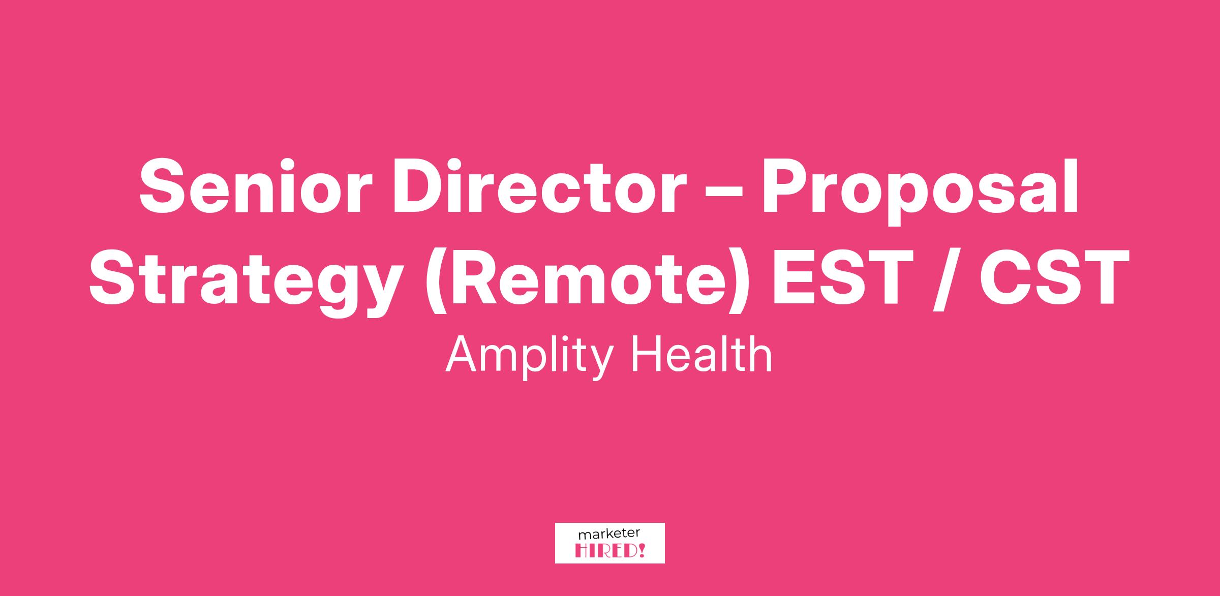 Senior Director β Proposal Strategy (Remote) EST / CST
