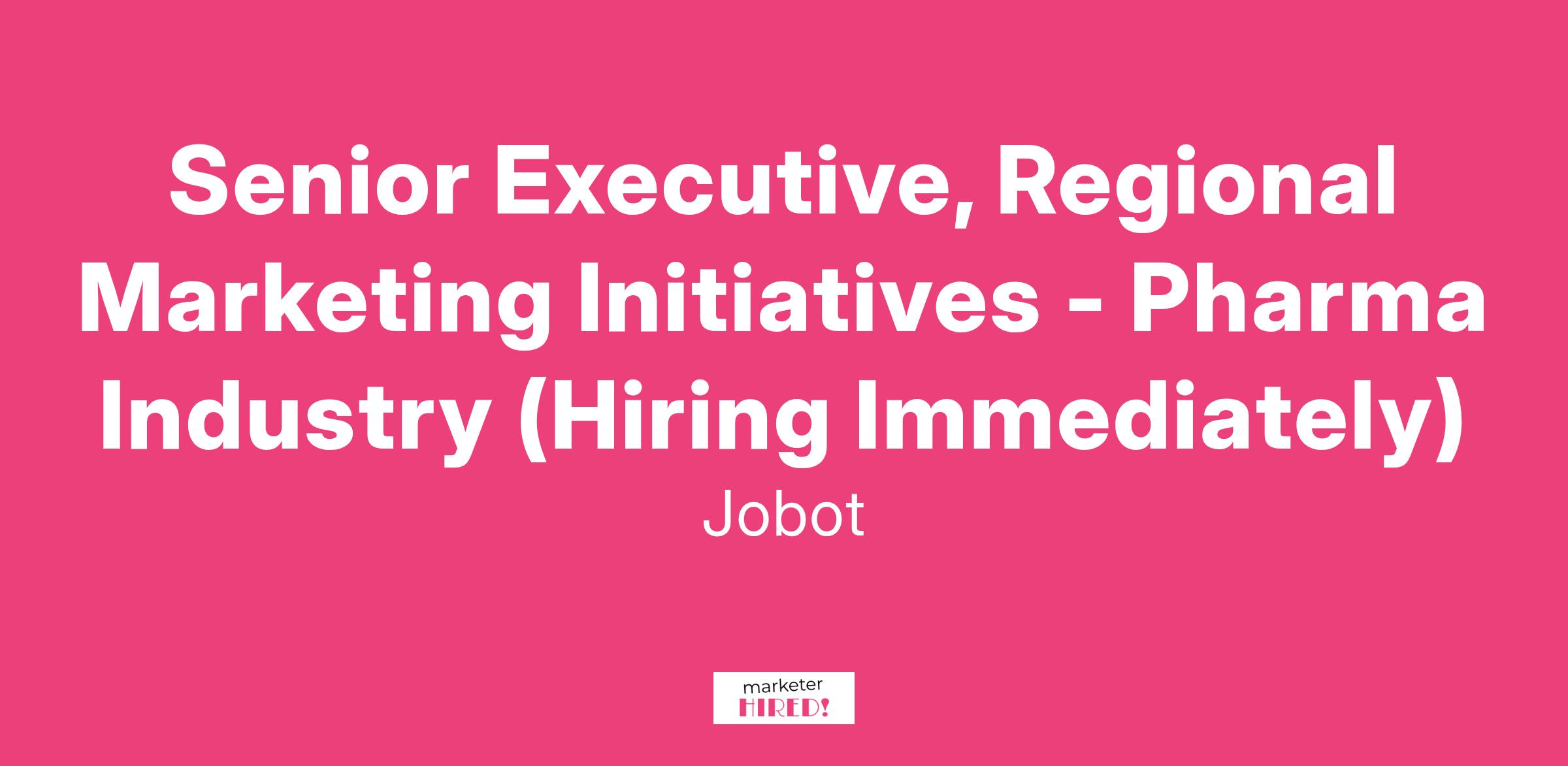 Senior Executive, Regional Marketing Initiatives - Pharma Industry (Hiring Immediately)