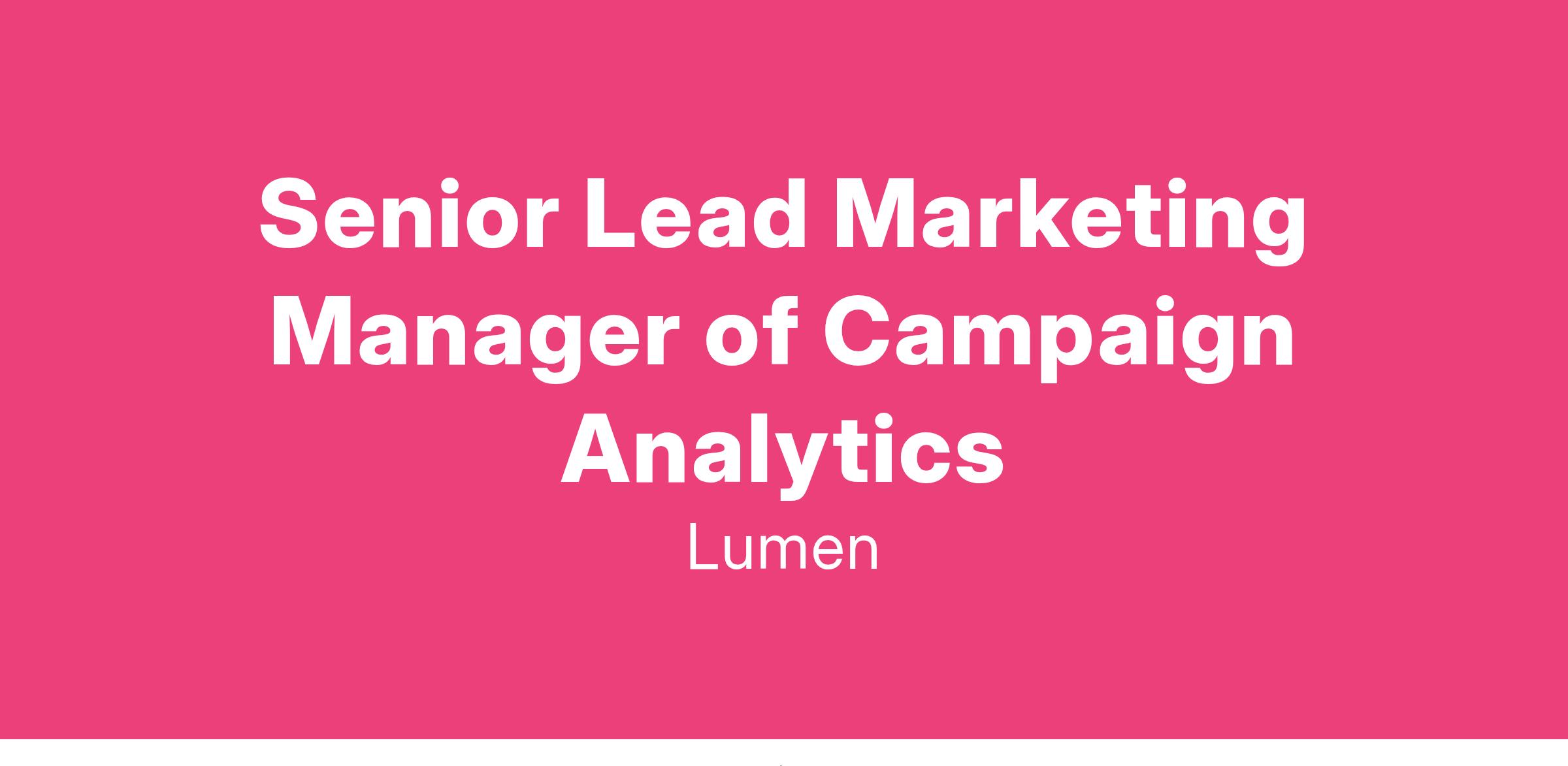 Lumen Senior Lead Marketing Manager of Campaign Analytics Honolulu , Hawaii Apply Now