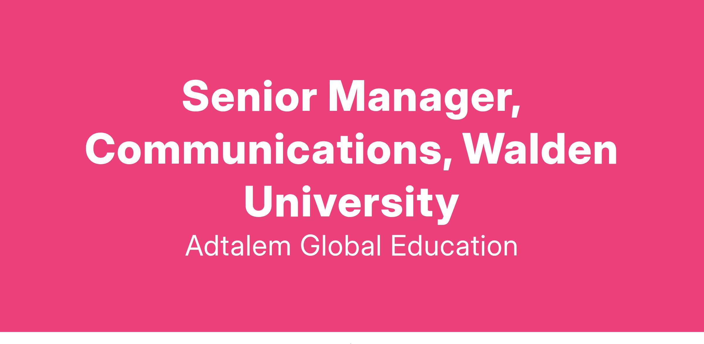 This position is responsible for providing strategic communications counsel for institutional communications to enhance consistency, strategic approach, and alignment of messaging for Walden University, an Adtalem Global Education institution, in support of our strategic growth objectives. Provides strategic communications counsel for institution communications and cascades gold-tier communications information to ensure consistency of messaging and equip institutions with Adtalem highlights for need-to-know colleagues. Additionally, this person will foster engagement and build affinity among key stakeholders while capturing and conveying the unique student experience, the brand identity, and our organization’s commitment to diversity, inclusivity, and educational justice. As a member of the Global Communications and Corporate Affairs team supporting Walden University, this position will ensure the quality of communications with stakeholders through storytelling opportunities that enhance the Walden brand.