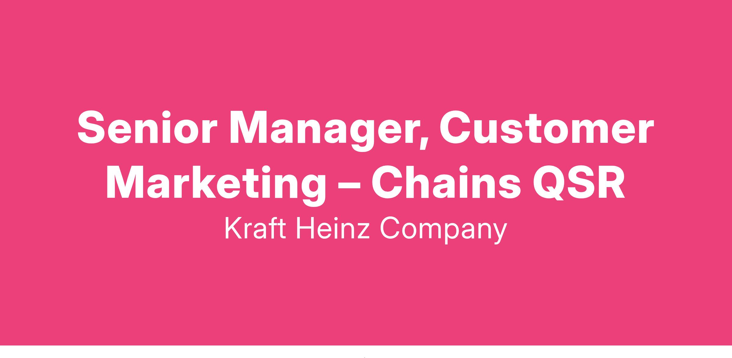 As the Senior Manager, Customer Marketing – Chains QSR , you’ll drive growth within the Chains Quick-Serve Restaurants channel, a priority for the US Away From Home (AFH) Business Unit. This role focuses on developing strategic priorities, go-to-market plans, and customer relationships to create branded experiences and drive innovation on a national scale. Partnering with major accounts in the Burger and Chicken restaurant space, you’ll lead high-impact initiatives with visibility to senior leadership. This position offers a unique opportunity to develop B2B marketing skills, manage channel strategy closely partnered with sales, and implement growth strategies that strengthen our market presence.