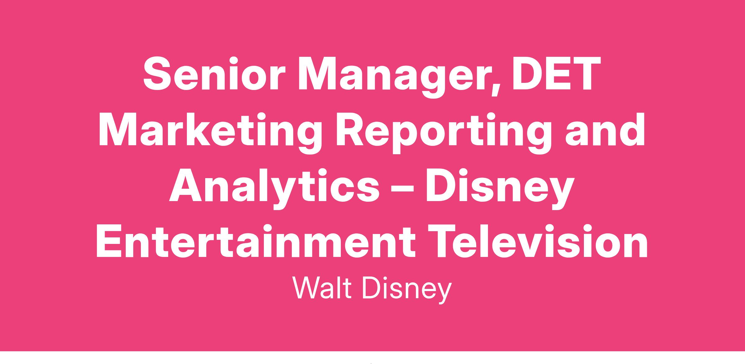 Job Posting Title: Senior Manager, DET Marketing Reporting and Analytics – Disney Entertainment Television