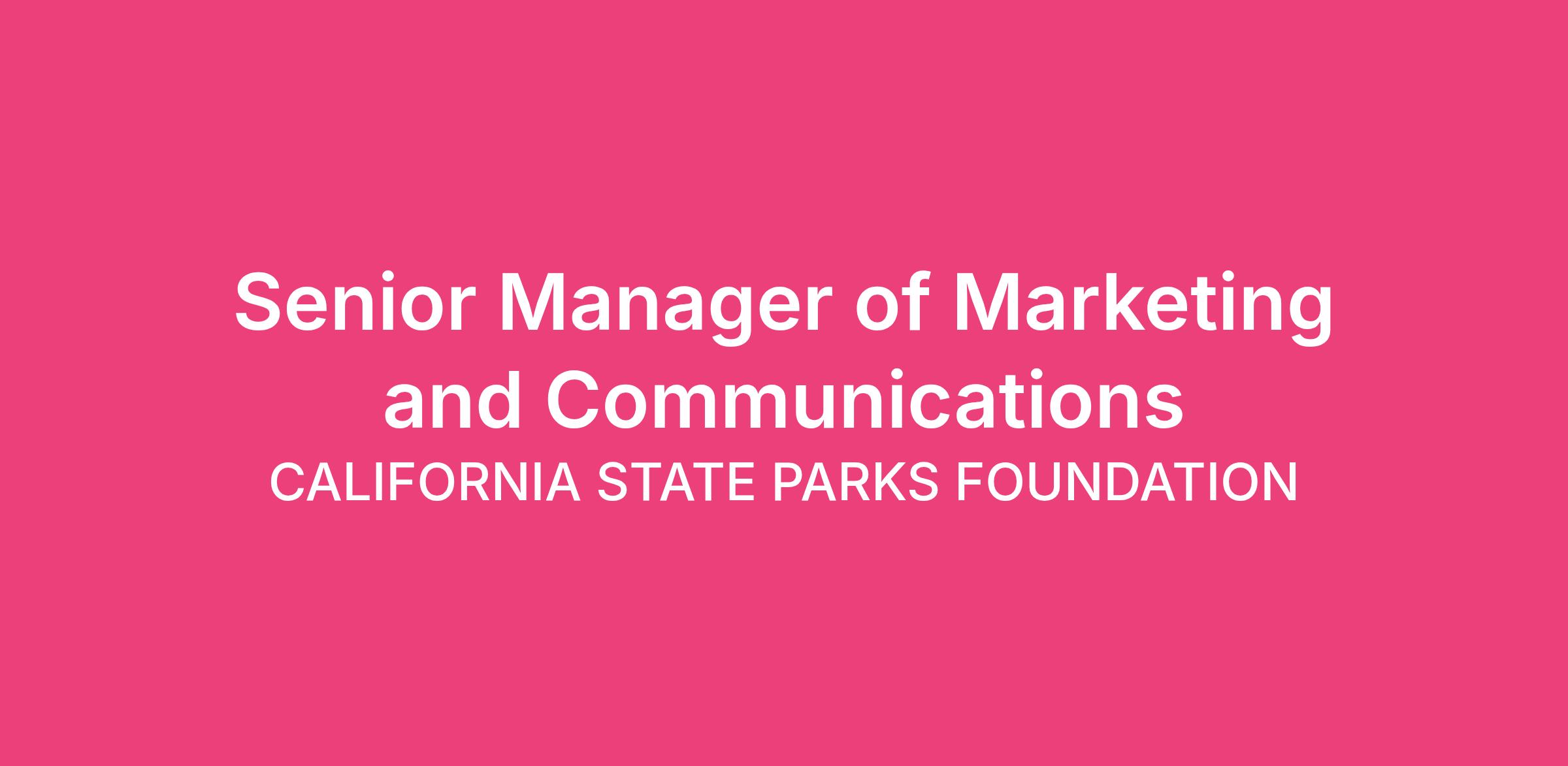 California State Parks Foundation (CSPF) seeks an experienced and strategic Senior Manager of Marketing and Communications to manage, support, and implement the organization’s marketing and communications efforts. Reporting to the Director of Marketing and Communications, this role manages integrated marketing and communications strategies that build awareness, engagement, and long-term support for California’s state parks.