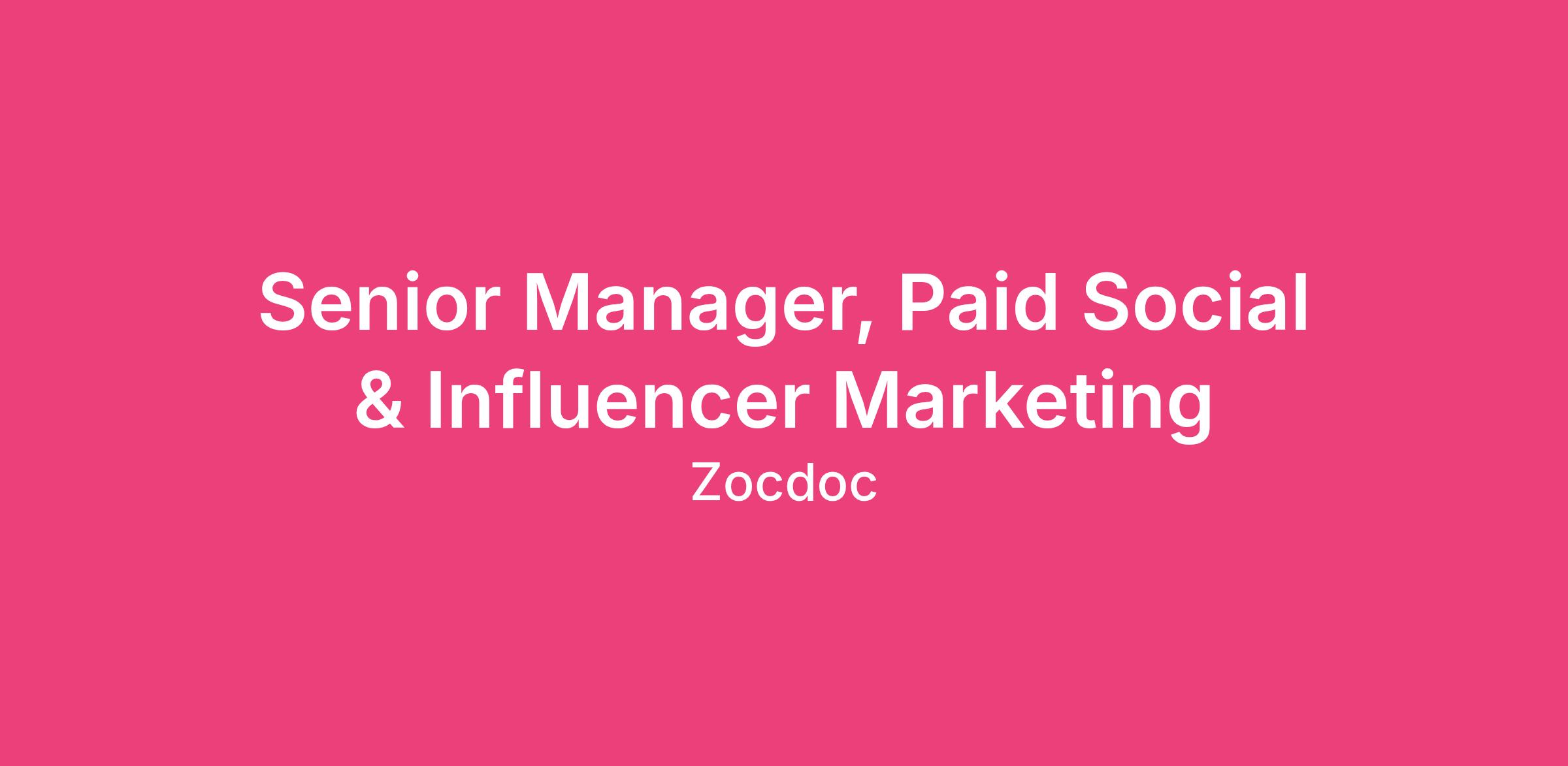 Zocdoc is looking for a Senior Manager, Influencer & Paid Social Marketing to join our Growth Marketing team. Reporting to the Group Manager, Acquisition Marketing, you’ll own the strategy and performance of our multi-million dollar Influencer and Paid Social acquisition programs—scaling both channels against strict ROAS goals while building a cohesive, omni-channel approach.