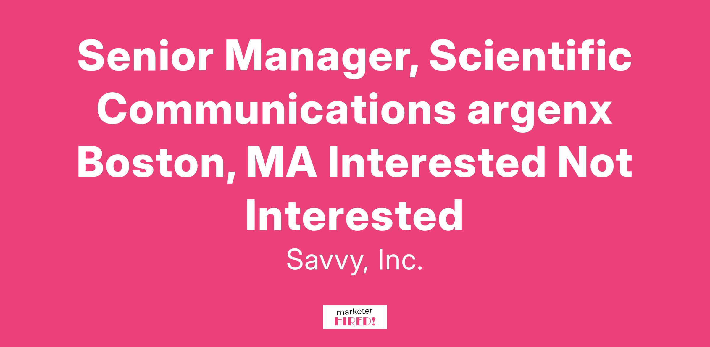 Senior Manager, Scientific Communications argenx Boston, MA Interested Not Interested