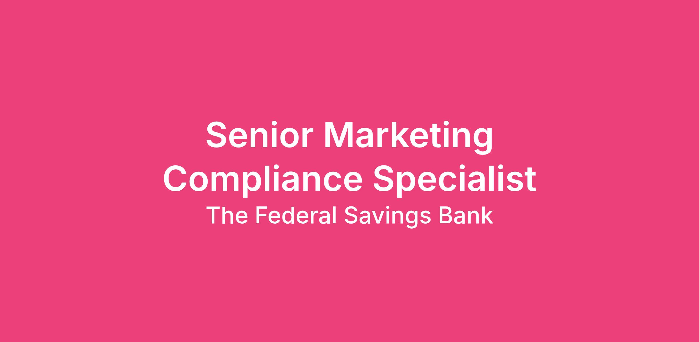 The Senior Marketing Compliance Specialist is responsible for review of materials to ensure the bankβs compliance with all applicable banking laws and regulatory requirements.