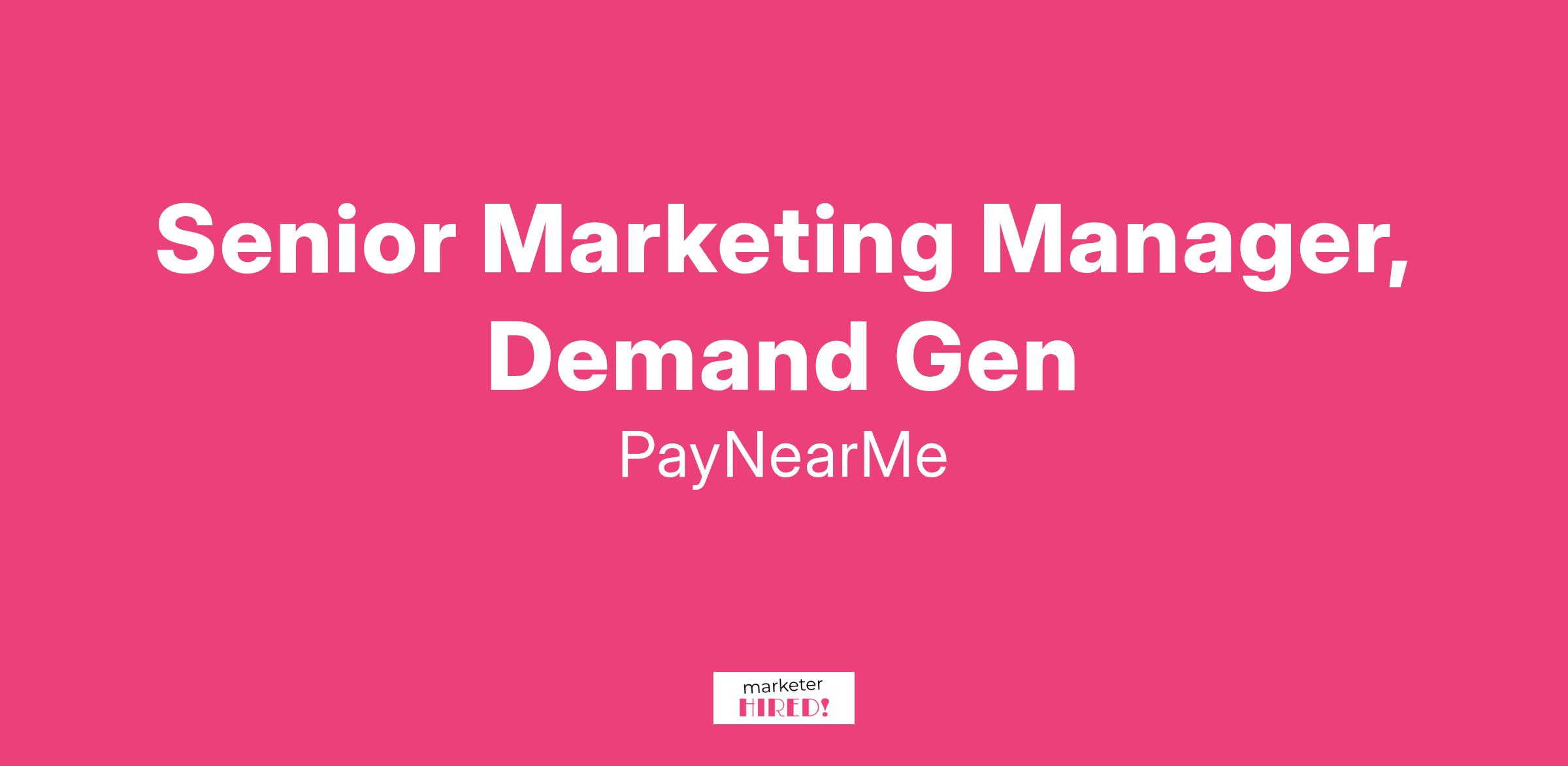 The Sr. Marketing Manager, Demand Gen will take ownership of large-scale demand gen marketing initiatives by developing, executing, and influencing programs to drive awareness, demand and opportunity creation in the Financial Institutions & Lending vertical at PayNearMe.