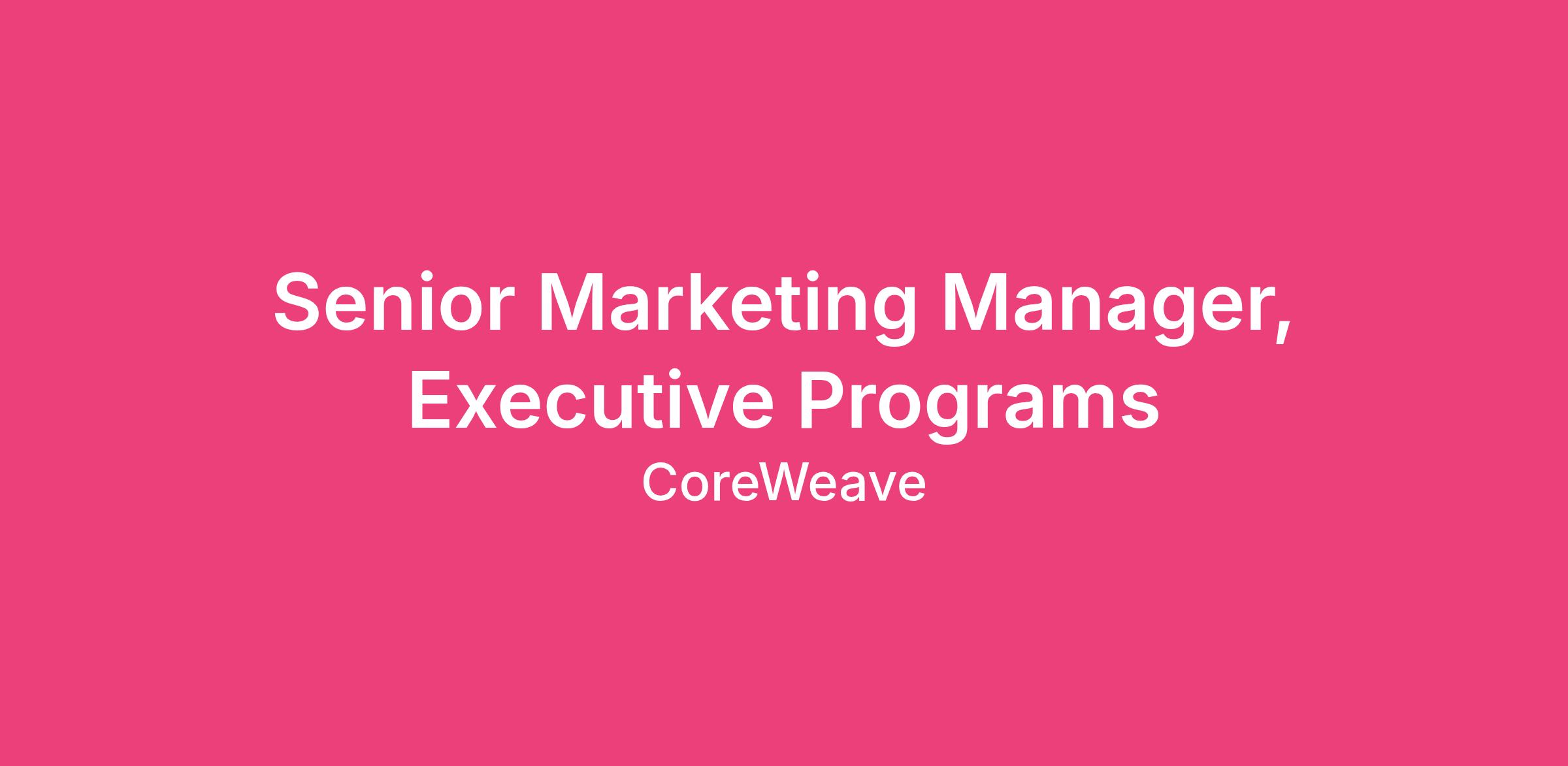 As a Senior Marketing Manager, Executive Programs, you will be a core operator in CoreWeave’s executive engagement engine. You’ll lead the day-to-day design and execution of global executive programs that drive VP and C‑Suite engagement within priority AI-native and enterprise accounts. You’ll define programming, content, target audiences, and measurement strategy across hospitality, executive tracks at flagship events, customer meetings, and Customer Advisory Boards (CABs) — working in close partnership with Sales, Events Marketing, Product Marketing, and the C‑suite.