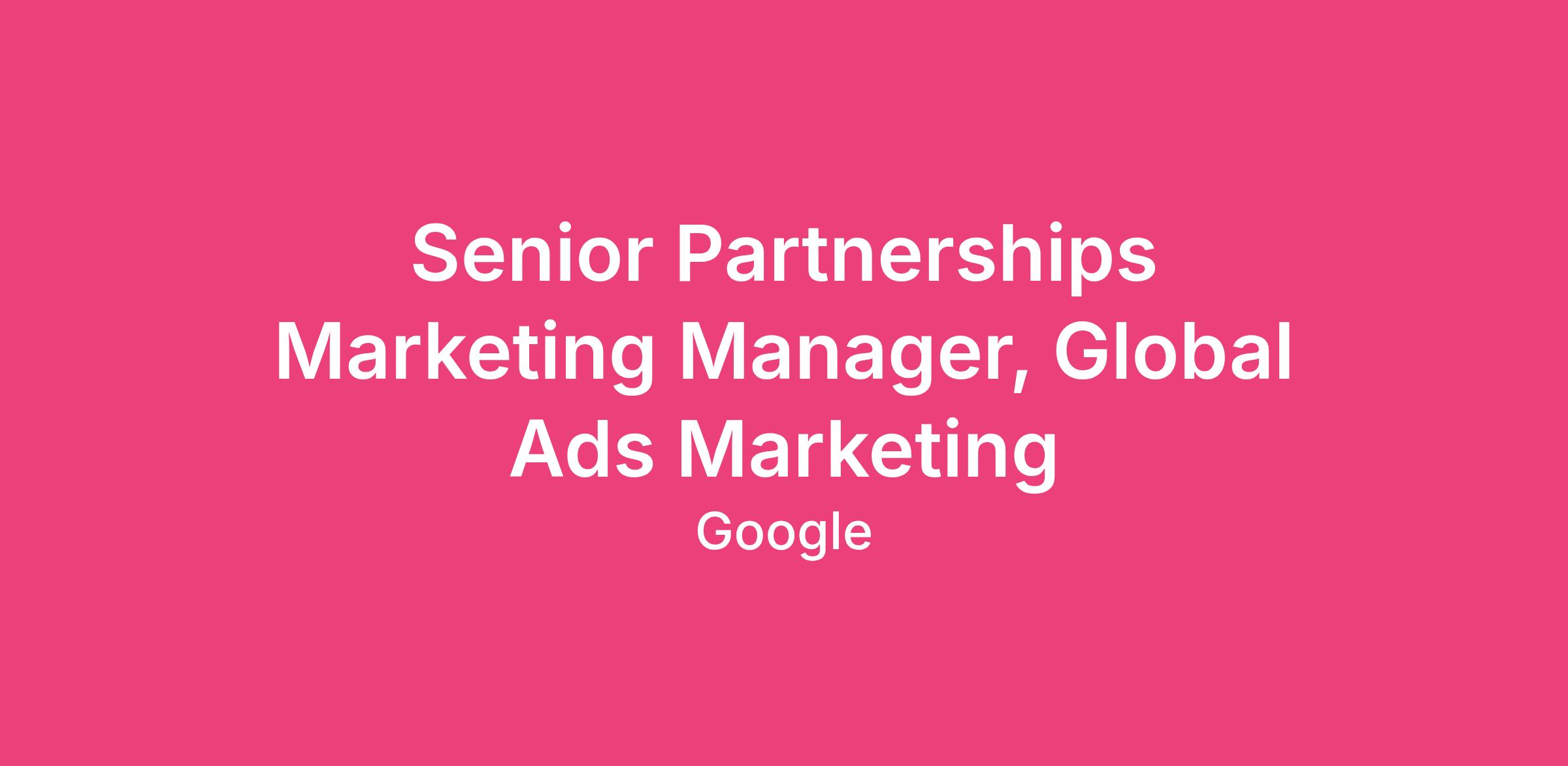Senior Partnerships Marketing Manager, Global Ads Marketing