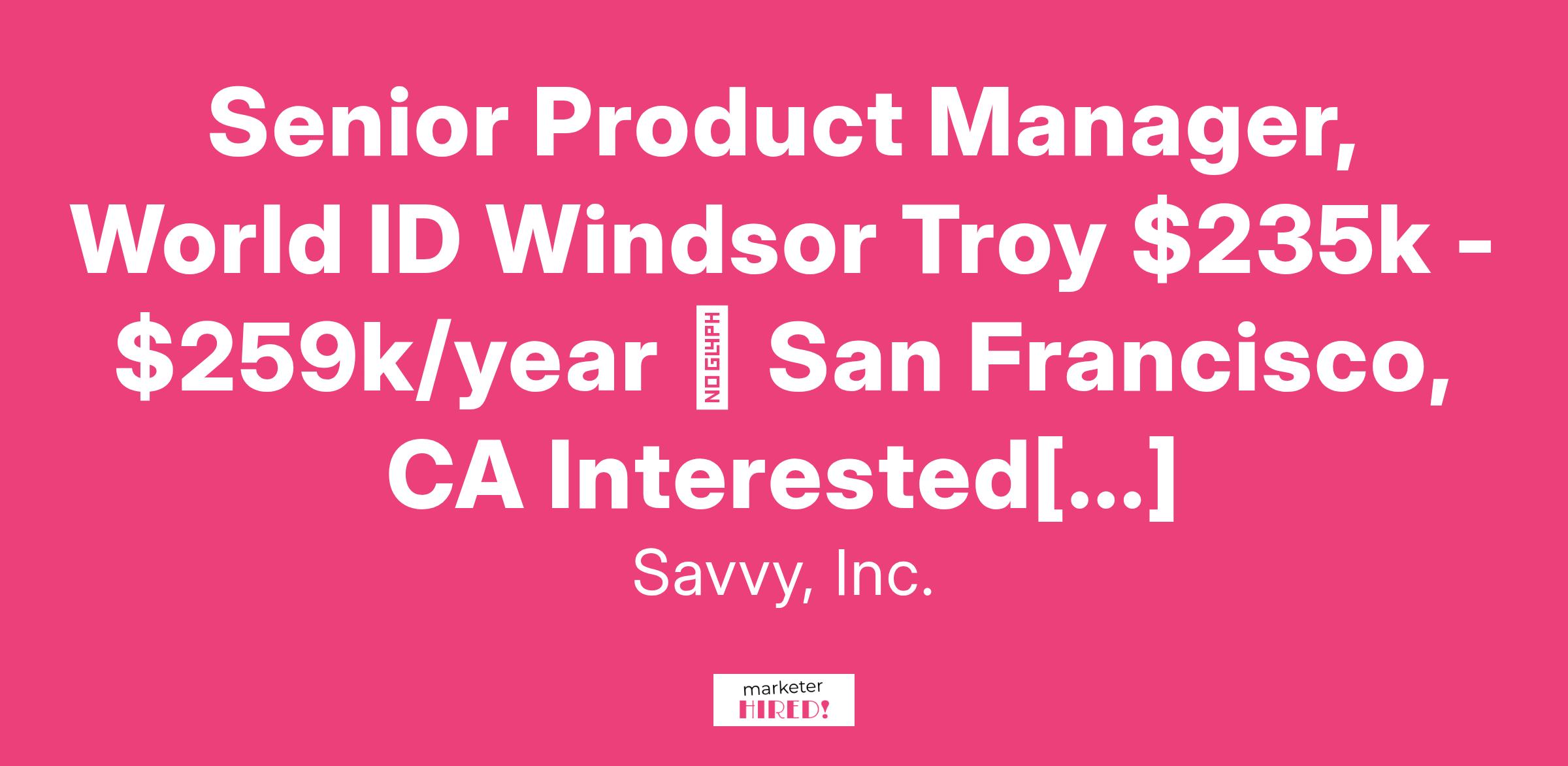 Senior Product Manager, World ID Windsor Troy $235k - $259k/year β