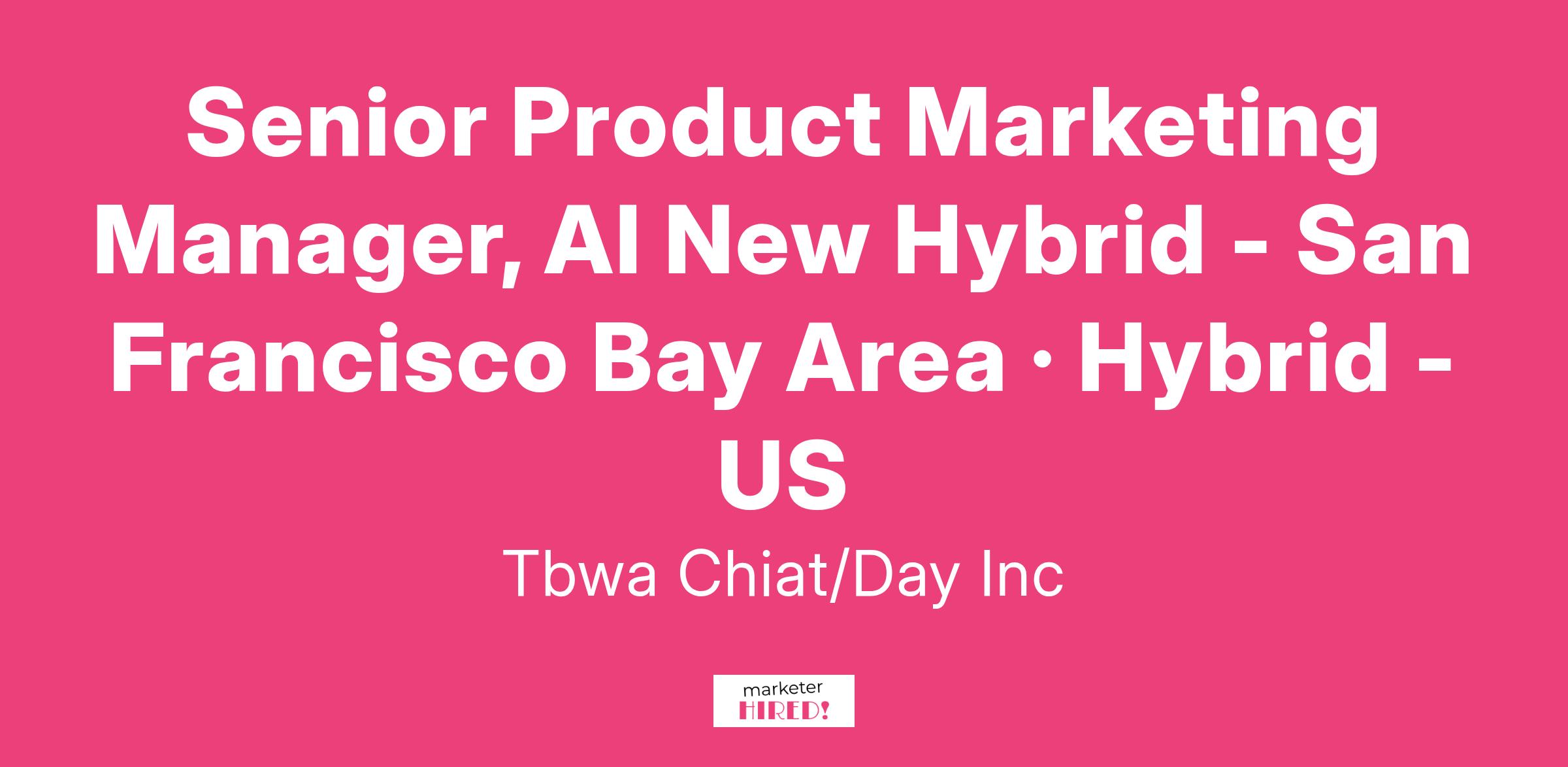 Senior Product Marketing Manager, AI New Hybrid - San Francisco Bay Area · Hybrid - US