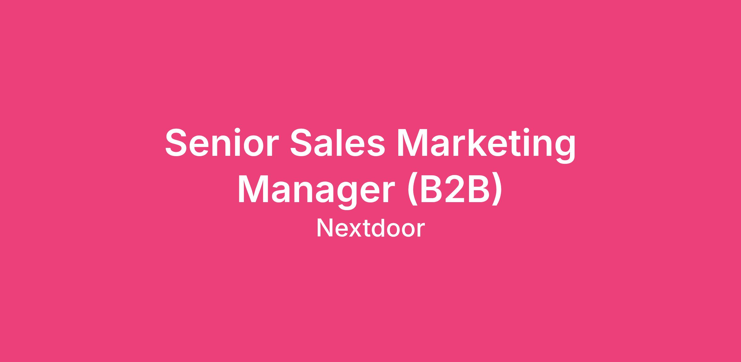 As a Senior Sales Marketing Manager you’ll own Nextdoor’s B2B positioning and storytelling, and build a scalable marketing engine that makes Nextdoor a must‑buy for advertisers. You will bring a strong, well‑informed point of view on how Nextdoor shows up to advertisers and agencies, and turn that into sharp collateral, programs, and playbooks that help sellers win.