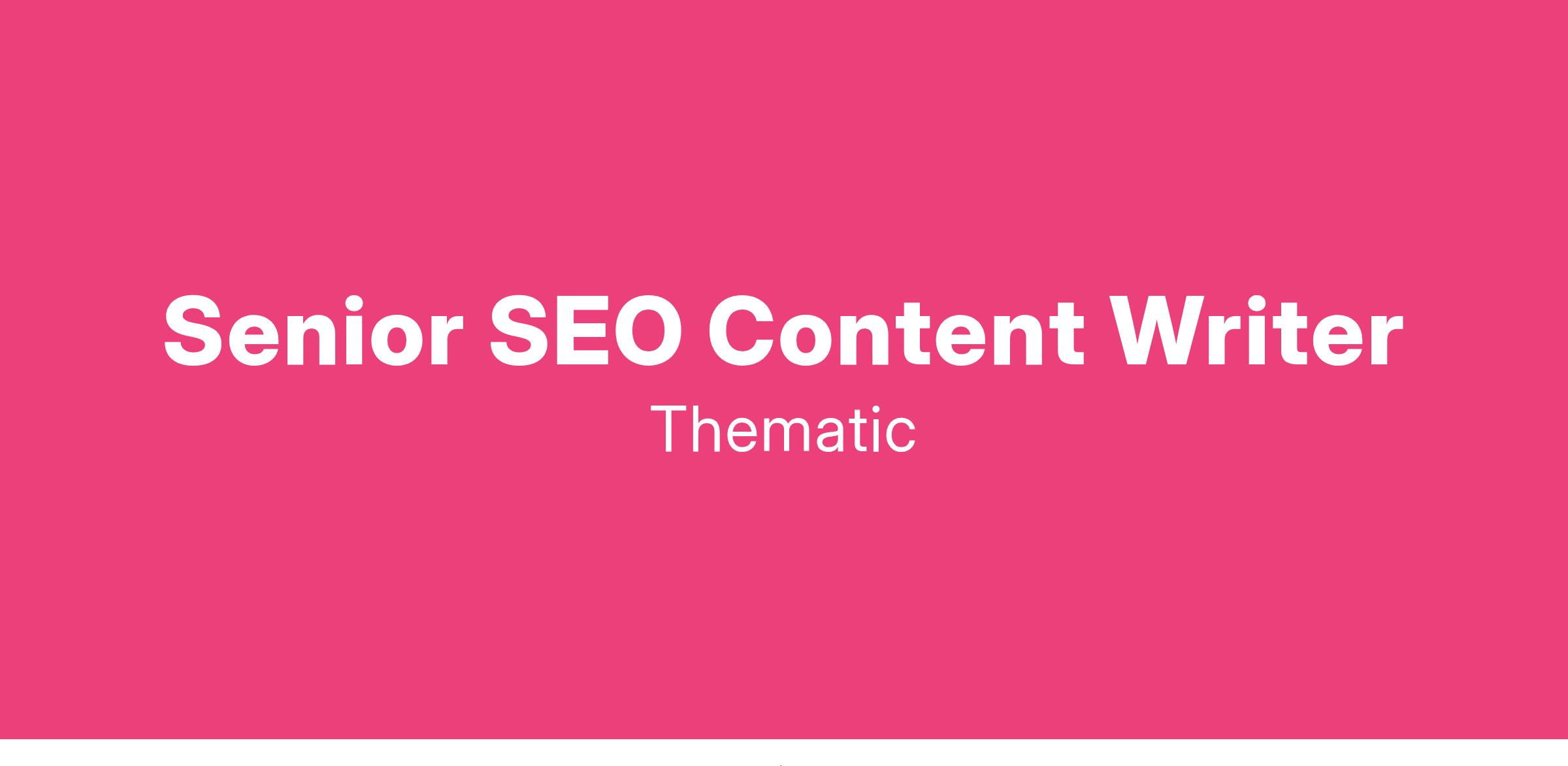 We are seeking talented senior writers to join our team. As a writer for Thematic, you will help create blog posts, case studies, and templates to educate and engage our audience on the power of feedback analytics, AI and customer insights in transforming customer experiences and business profits.
