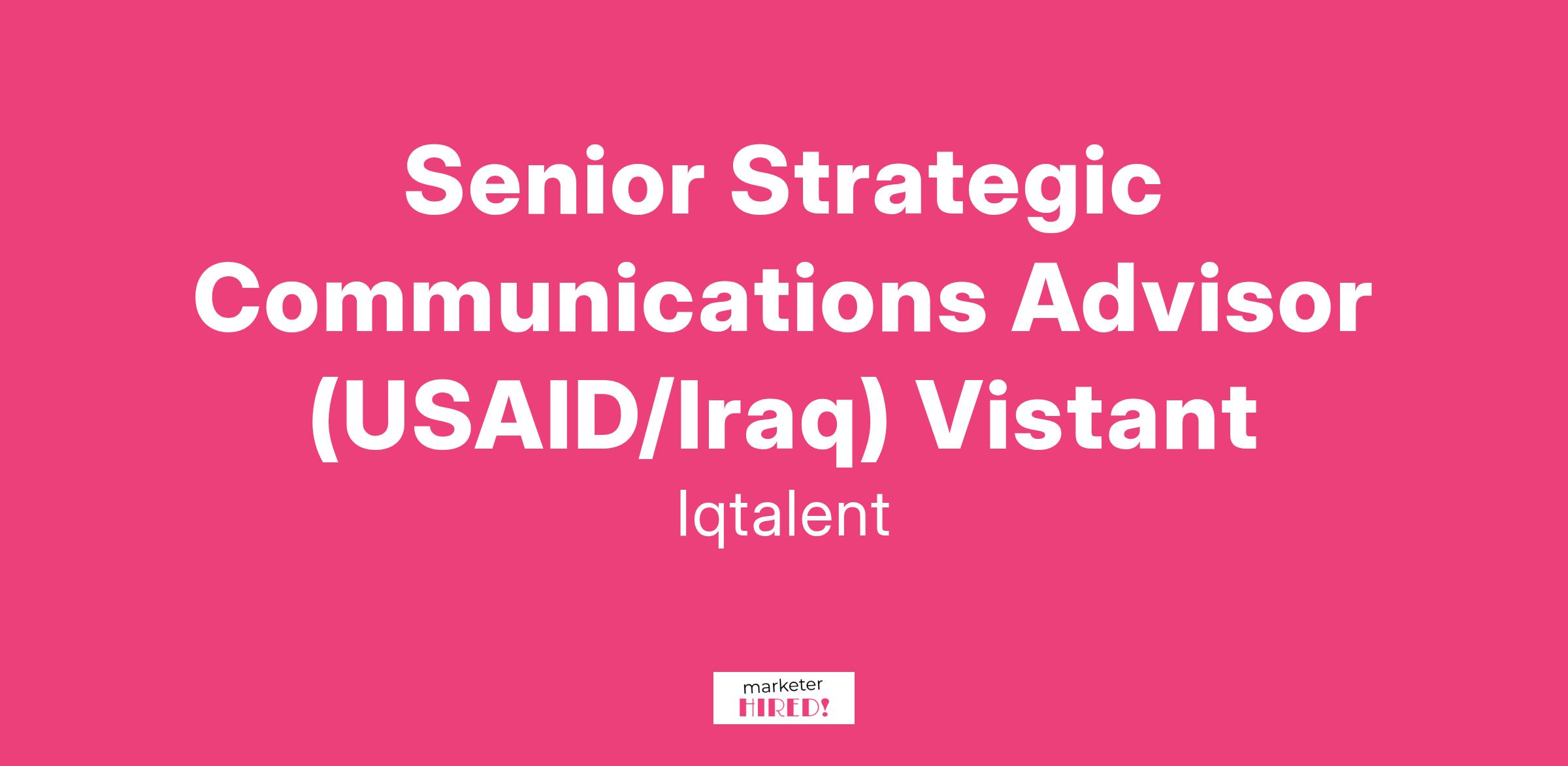 Senior Strategic Communications Advisor (USAID/Iraq) Vistant