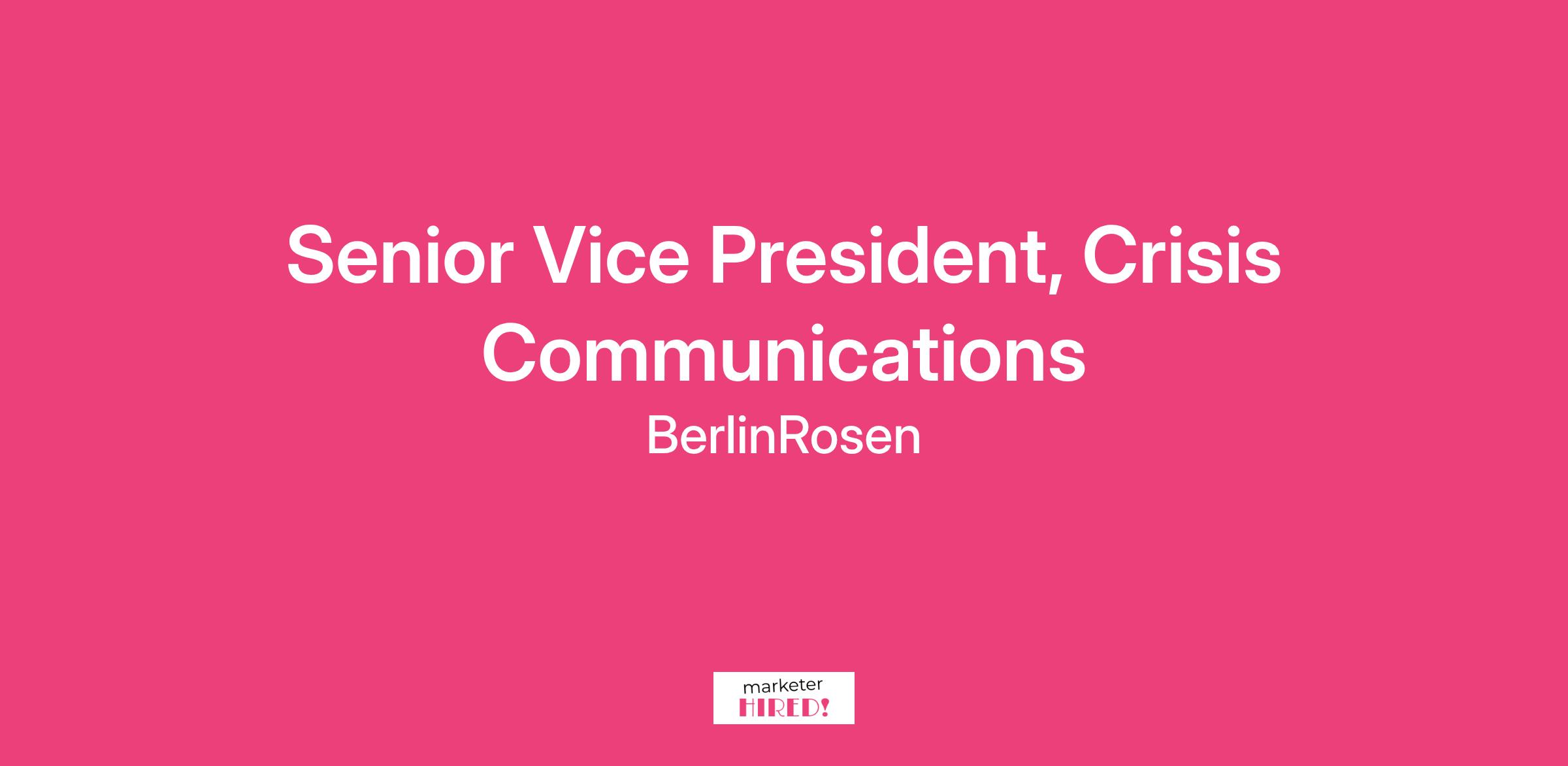 BerlinRosen is seeking an experienced communications strategist to join us as a Senior Vice President.