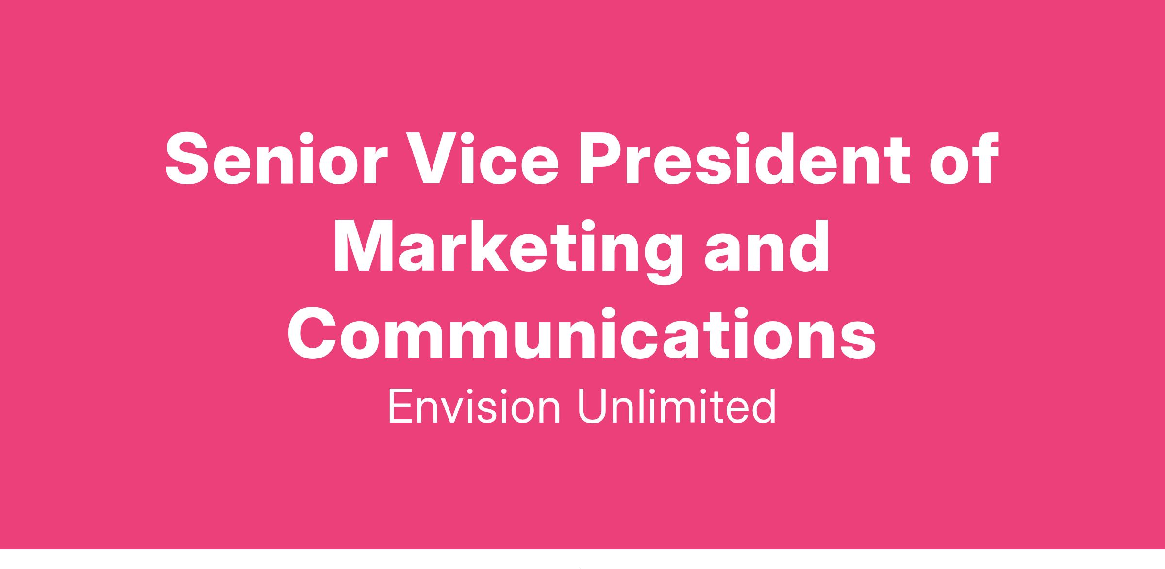 The Senior Vice President (SVP) of Marketing and Communications is responsible for developing and implementing a comprehensive marketing, communications, and brand strategy that supports the ongoing growth of Envision Unlimited. The SVP will lead initiatives to promote the organization's programs, build its brand presence, and engage stakeholders across multiple channels. The role will evolve with the organization's expansion and focus on industry-standard marketing practices such as audience segmentation, omnichannel marketing, and digital transformation. The SVP will scale the Marketing and Communications team to meet the demands of a growing organization and create systems that ensure continued brand growth and awareness.