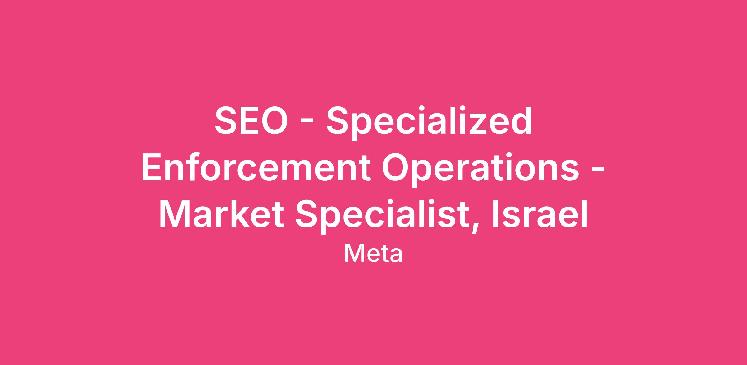 SEO - Specialized Enforcement Operations - Market Specialist, Israel