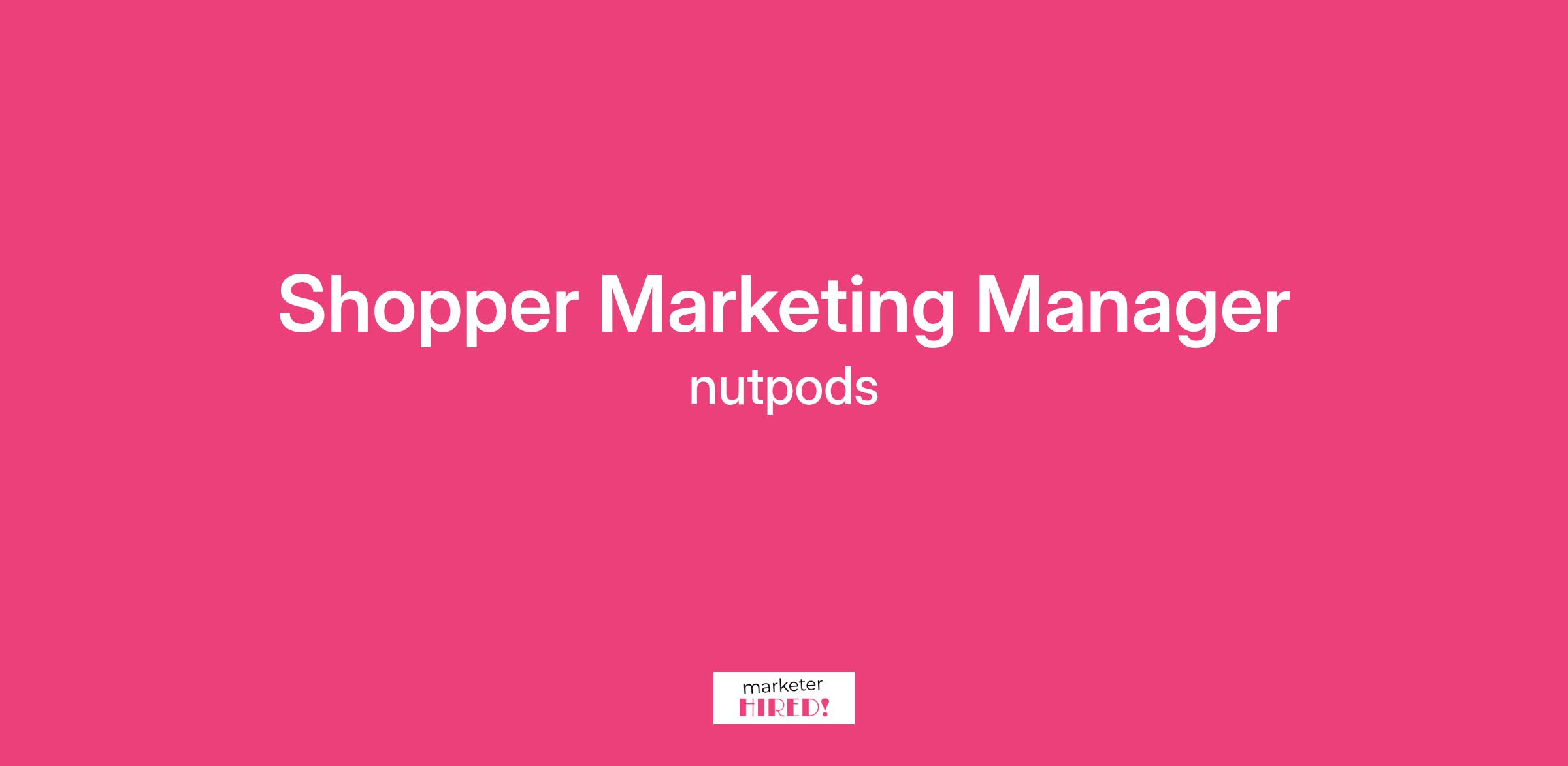 Position Summary: nutpods is looking for an enthusiastic and hard-working Shopper Marketing leader who loves to learn and is a team player, willing to roll up your sleeves to get things done. Your responsibilities will include the strategy, execution and analysis of national shopper programs for our retail partners including Kroger, Albertsons, Walmart, Target, Sprouts, and more. This includes very close collaboration with our sales team and thinking outside the box to ideate effective and efficient velocity-driving programs with our partners.