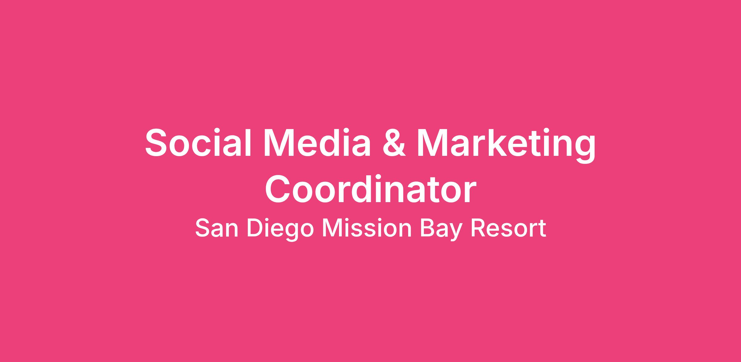 The Social Media & Marketing Coordinator will support the development and execution of digital and social content strategies, assist with creative production, and help maintain a cohesive brand presence across all platforms for Estancia La Jolla, LβAuberge Del Mar, and San Diego Mission Bay. This role reports directly to the Area Director of Marketing and works closely with marketing, PR, food and beverage, operations, and events teams.
