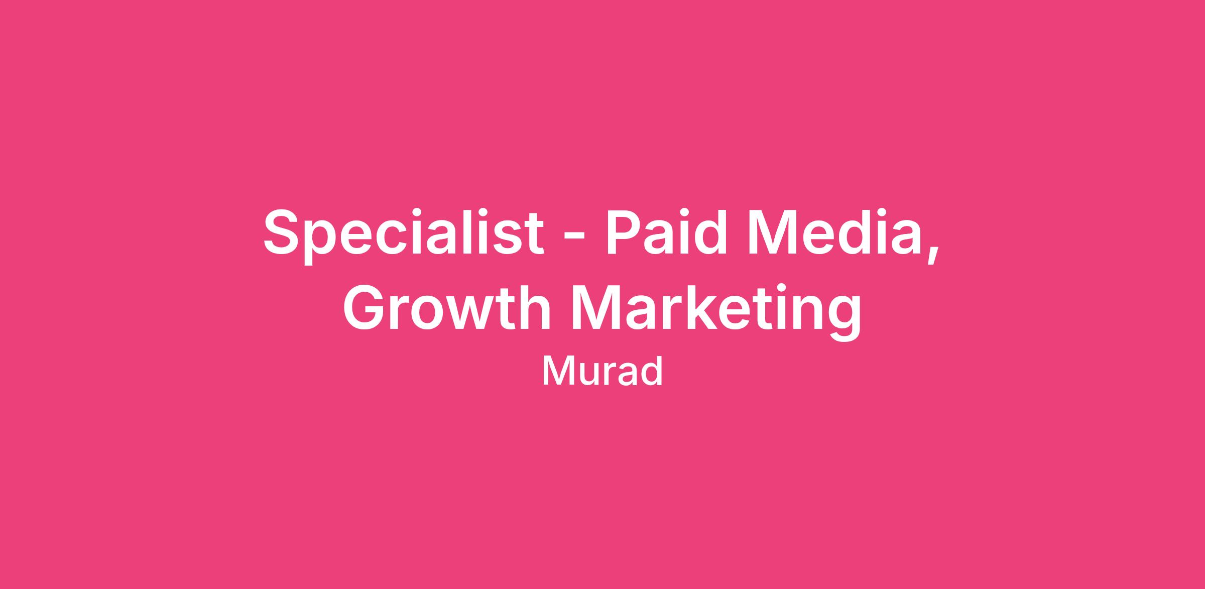 Specialist - Paid Media, Growth Marketing