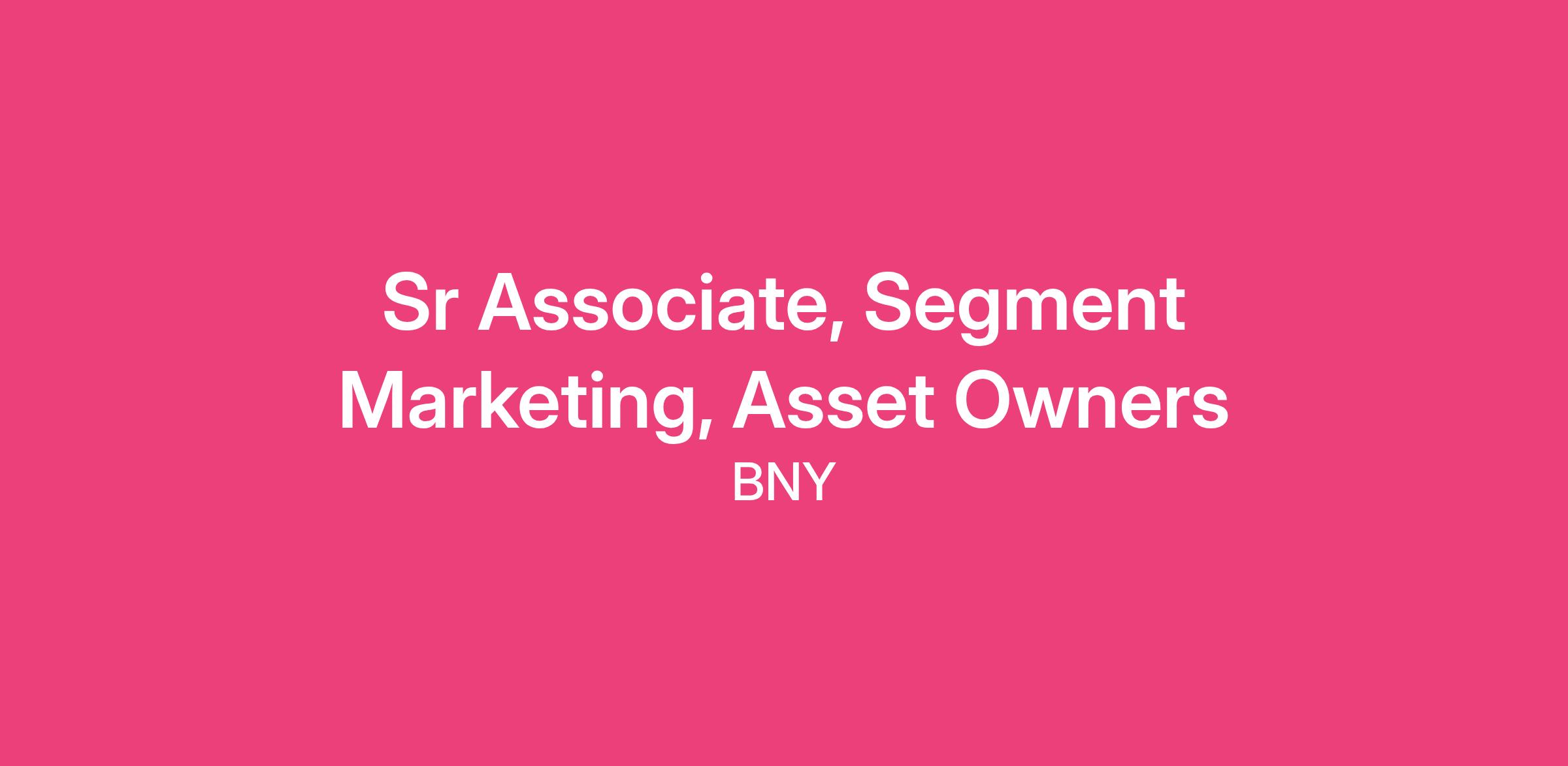 At BNY, our culture allows us to run our company better and enables employees' growth and success. As a leading global financial services company at the heart of the global financial system, we influence nearly 20% of the world's investible assets. Every day, our teams harness cutting-edge AI and breakthrough technologies to collaborate with clients, driving transformative solutions that redefine industries and uplift communities worldwide. Recognized as a top destination for innovators, BNY is where bold ideas meet advanced technology and exceptional talent. Together, we power the future of finance - and this is what #LifeAtBNY is all about. Join us and be part of something extraordinary. We're seeking a future team member for the role of Senior Associate, Segment Marketing, Asset Owners to join our Client Marketing team. This role is located in New York. In this role, you'll make an impact in the following ways: Support and drive the development and execution of segment or client value-driven marketing content and go-to-market strategies for commercial segments. Lead projects that support the implementation of complex segment marketing plans and execute day-to-day support and decisions leveraging client insights for targeted campaigns aligned with the firm's key initiatives. Maintain collaborative relationships with internal and external resources to support marketing activities, providing technical guidance, direction, and decision-making as needed. Support the adoption of industry/segment trends, market climates, and competitive activities by executing adoption strategies, clearing blockers, and driving agreement with business partners to leverage opportunities. To be successful in this role, we're seeking the following: Bachelor's degree or the equivalent combination of work experience required. 2-5 years of related experience preferred; experience in the securities or financial services industry is preferred. Proven ability to manage budgets, approve expenses, and adhere to standard operating procedures. Strong collaboration and communication skills to maintain and cultivate good working relationships with internal teams and business partners. No direct people leadership required. At BNY, our culture speaks for itself, check out the latest BNY news at: BNY Newsroom BNY LinkedIn Here's a few of our recent awards: America's Most Innovative Companies, Fortune, 2025 World's Most Admired Companies, Fortune 2025 βMost Just Companiesβ, Just Capital and CNBC, 2025 Our Benefits and Rewards: BNY offers highly competitive compensation, benefits, and wellbeing programs rooted in a strong culture of excellence and our pay-for-performance philosophy. We provide access to flexible global resources and tools for your life's journey. Focus on your health, foster your personal resilience, and reach your financial goals as a valued member of our team, along with generous paid leaves, including paid volunteer time, that can support you and your family through moments that matter. BNY is an Equal Employment Opportunity/Affirmative Action Employer - Underrepresented racial and ethnic groups/Females/Individuals with Disabilities/Protected Veterans. BNY assesses market data to ensure a competitive compensation package for our employees. The base salary for this position is expected to be between $58,000 and $85,000 per year at the commencement of employment. However, base salary if hired will be determined on an individualized basis, including as to experience and market location, and is only part of the BNY total compensation package, which, depending on the position, may also include commission earnings, discretionary bonuses, short and long-term incentive packages, and Company-sponsored benefit programs. This position is at-will and the Company reserves the right to modify base salary (as well as any other discretionary payment or compensation) at any time, including for reasons related to individual performance, change in geographic location, Company or individual department/team performance, and market factors.