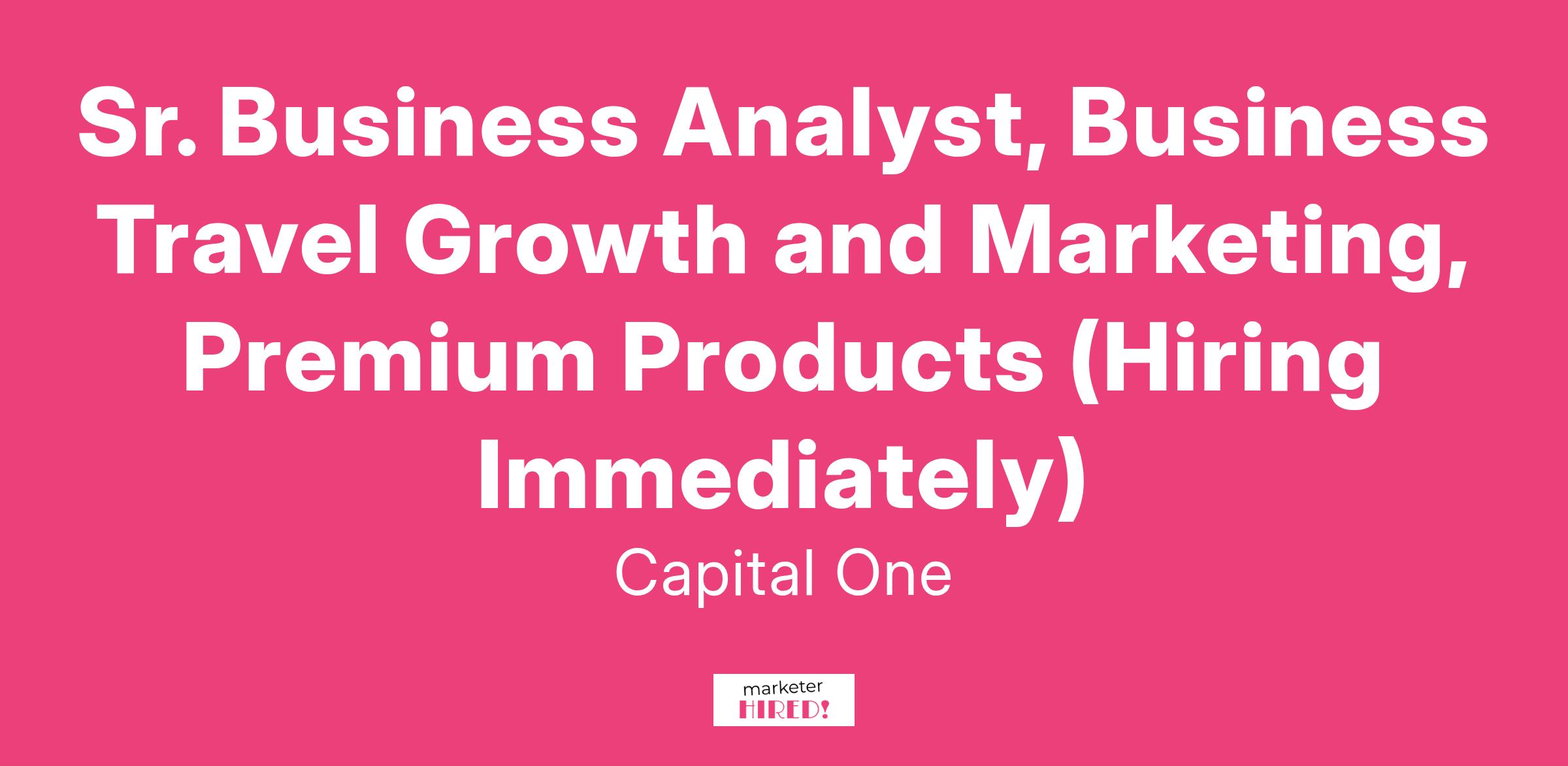 Sr. Business Analyst, Business Travel Growth and Marketing, Premium Products (Hiring Immediately)