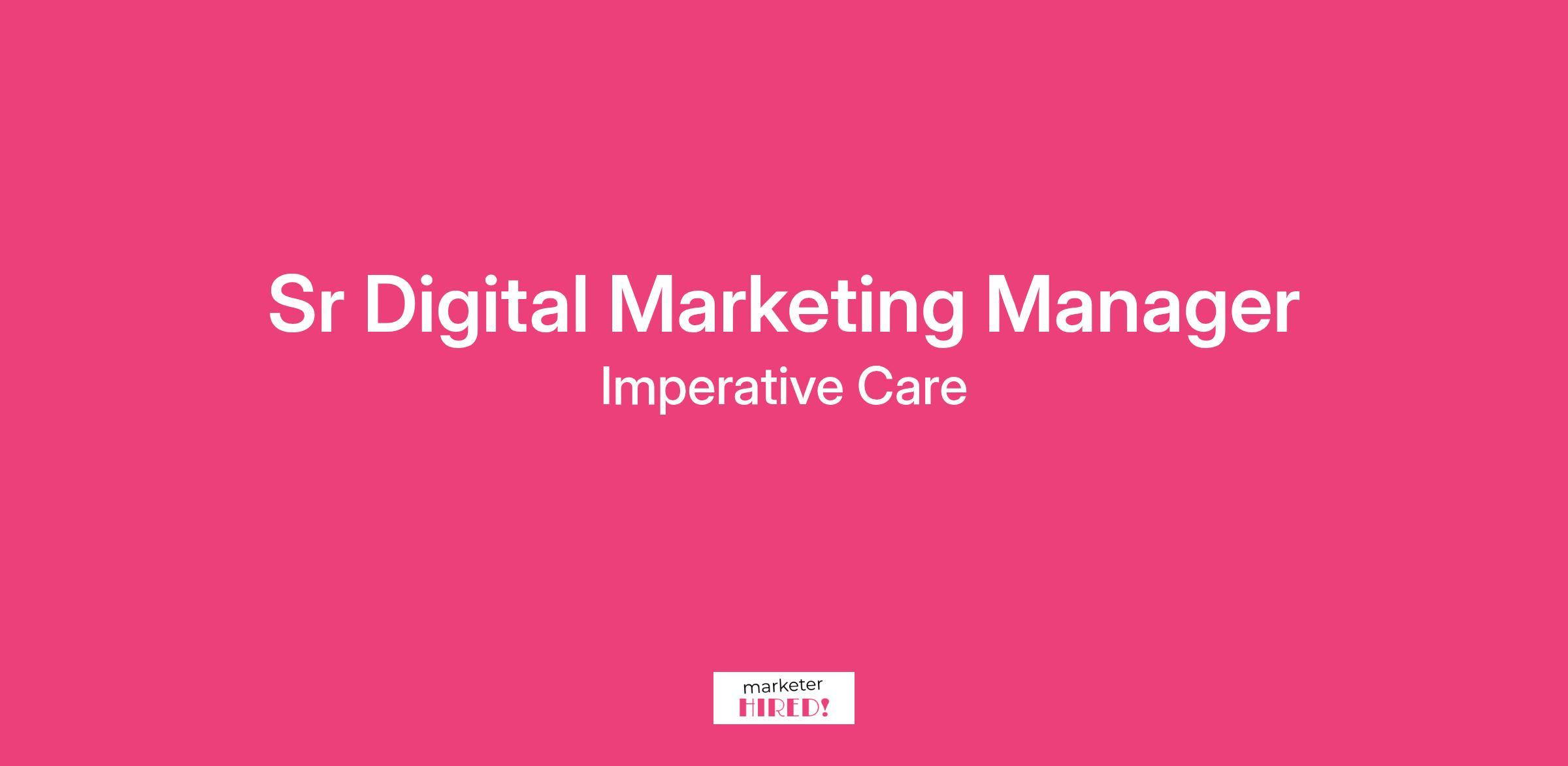 As the Senior Digital Marketing Manager, you will be a key architect of Imperative Care’s digital presence and a foundational builder of our marketing capabilities. You will be responsible for building a scalable and sustained digital marketing ecosystem, evolving our foundational capabilities into a best-in-class function. This role is a unique opportunity to lead the charge in developing and executing comprehensive digital marketing strategies to reach and engage our diverse target audiences, including interventionalists, surgeons, hospital staff, and administration. This role drives the amplification of Imperative Care’s brand visibility across channels and supports commercial initiatives through data-driven strategy and execution. You will work in close partnership with the rest of the Marketing Communications team and Marketing team.