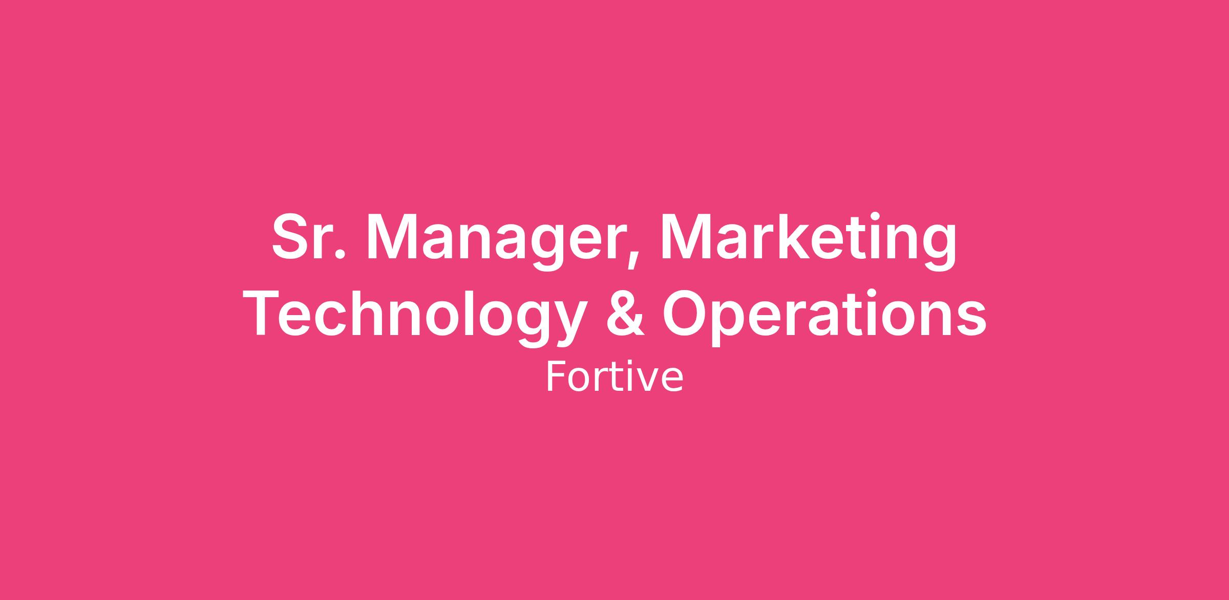 Sr. Manager, Marketing Technology & Operations