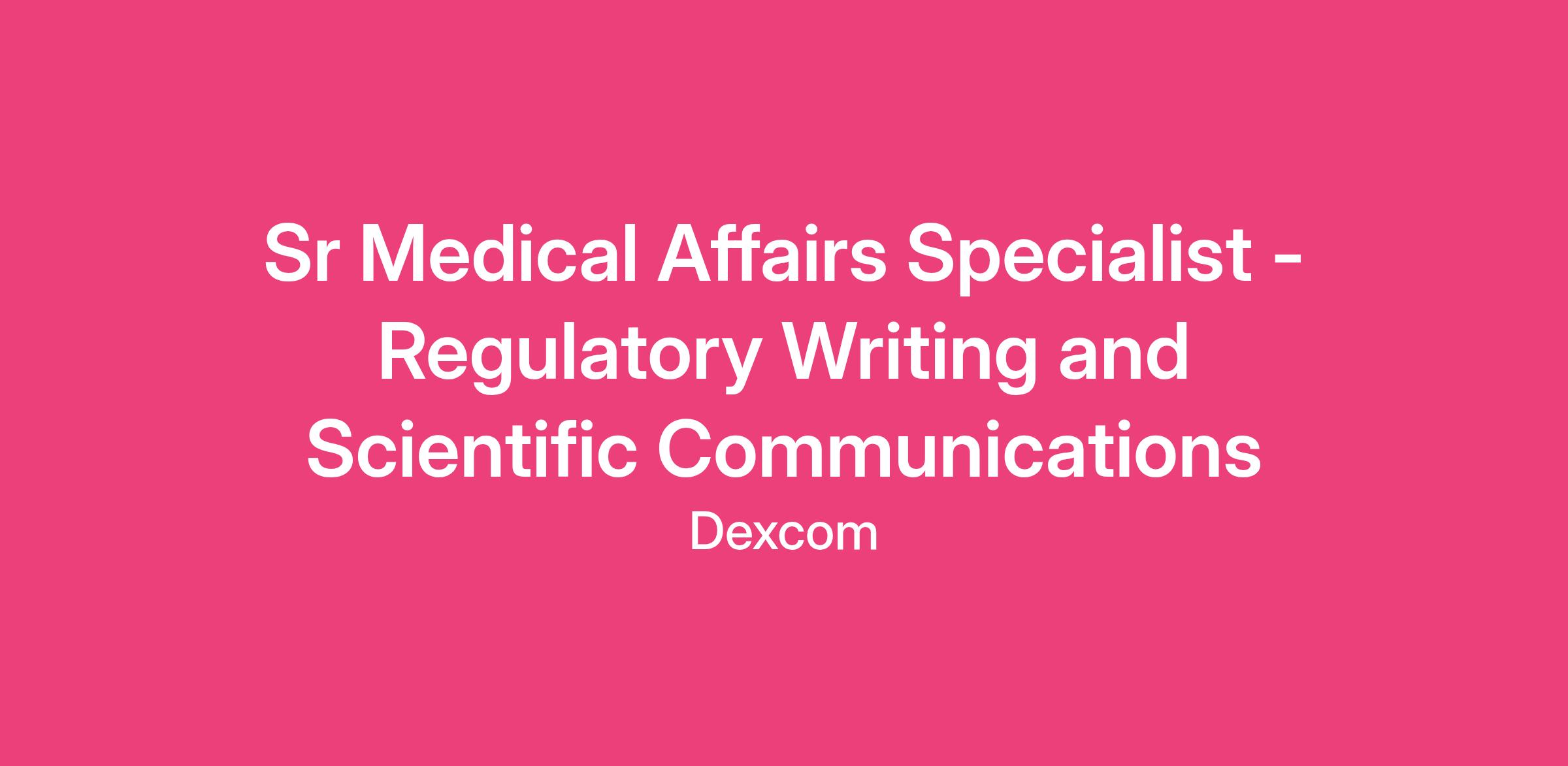 Sr Medical Affairs Specialist - Regulatory Writing and Scientific Communications