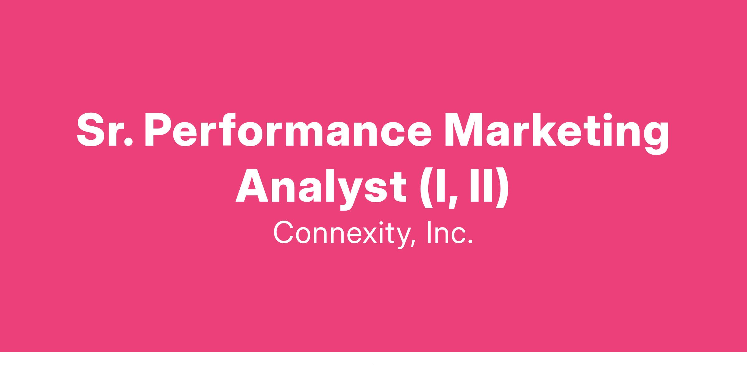 As a Sr. Performance Marketing Analyst (I, II) on our Traffic Acquisition and Analytics Team, youβll dive deep into big data to extract, analyze, and report on findings that drive growth for Connexity, Inc. and our clients. Youβll monitor and optimize sales performance on high-growth channels (Social, Search, Native, etc.), identify opportunities and risks for growth, and present and execute on recommendations for improving the overall health of our retail performance marketing network. You'll contribute on both the supply (customer acquisition channels) and demand (managing strategic retailers) sides of the business.