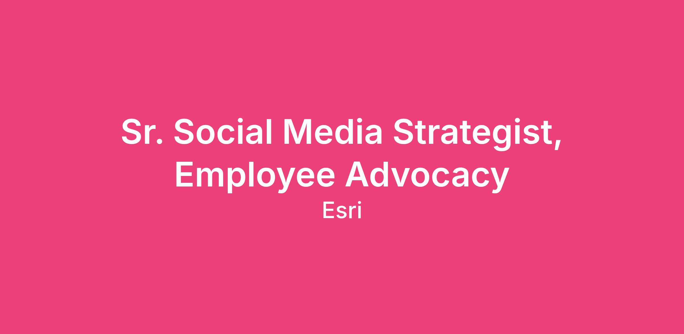 Are you an experienced social media strategist with a deep understanding of digital engagement? Esri is seeking a Social Media Lead with experience in developing, leading, and evaluating Employee Advocacy programs that drive brand awareness and enhance community engagement. In this role, you will oversee the execution of high-impact campaigns, analyze performance metrics at a strategic level, and contribute to the evolution of Esri’s digital presence. If you thrive in fast-paced environments and have a proven track record of driving social media success, we want to hear from you!
