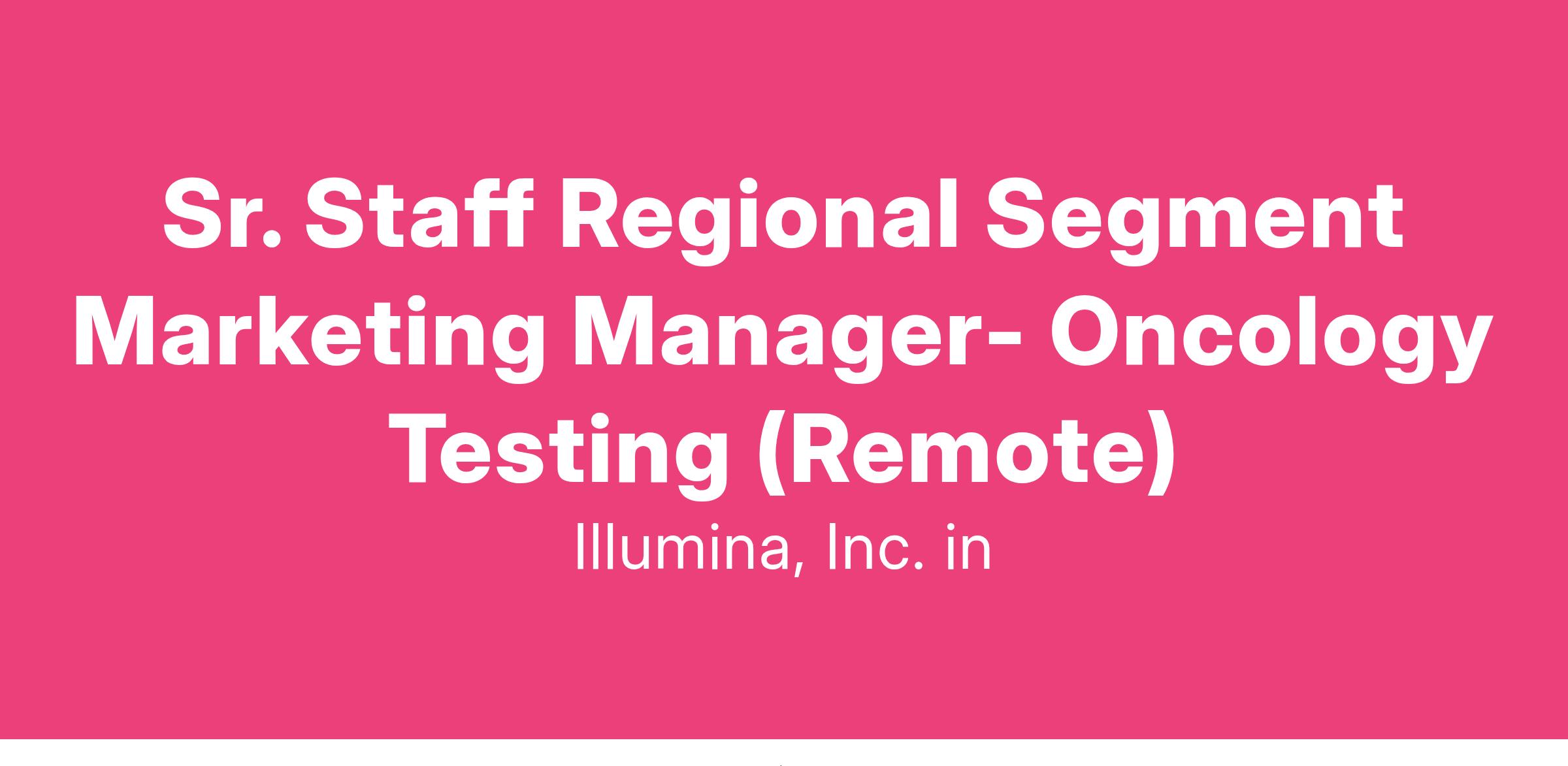 Sr. Staff Regional Segment Marketing Manager- Oncology Testing (Remote) (Finance)