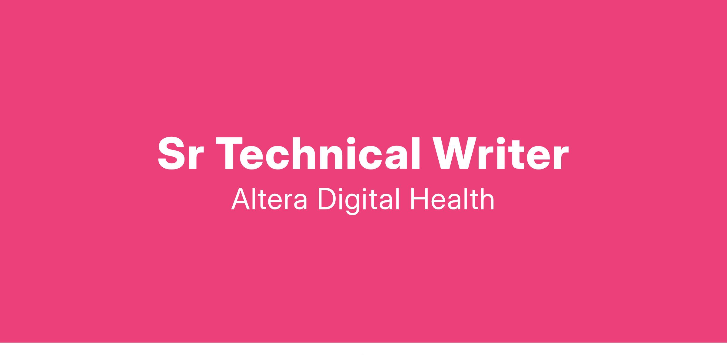 An advanced position for technical writers with excellent proven writing abilities. A Senior Technical writer produces user-friendly documentation to support Altera products. The documentation is directed at healthcare providers, patients, administrators, and practice staff.