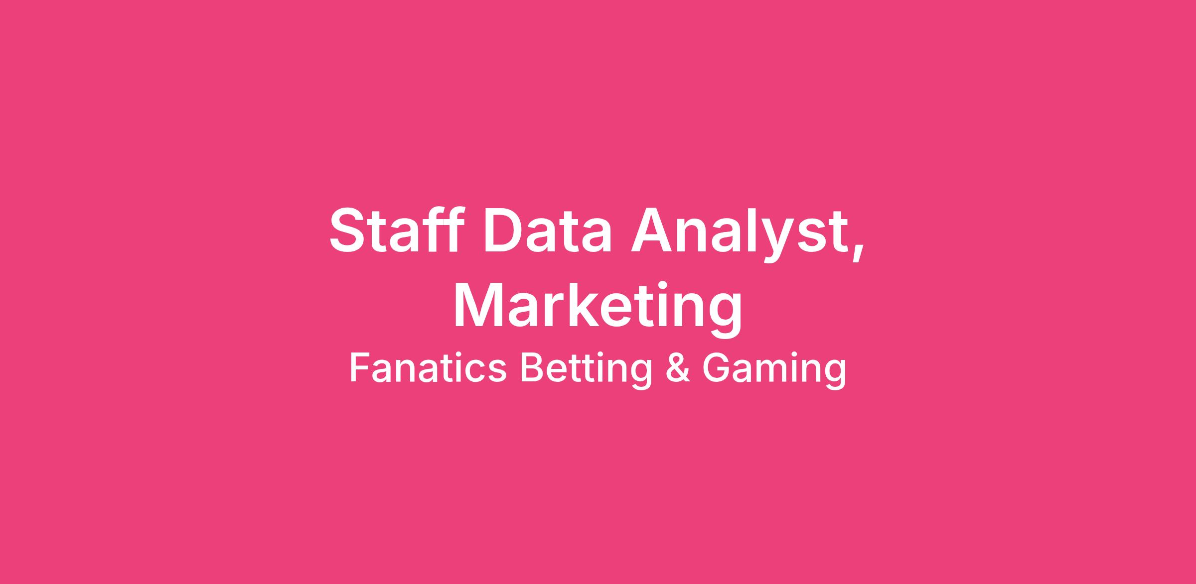 We are seeking a Staff Data Analyst to join the Fanatics Betting & Gaming organization leading a team of analysts responsible for ongoing performance tracking, reporting, and ad-hoc queries from stakeholders. The role reports into the Analytics Manager and will focus on creating insight to drive the growth of the business, partnering closely with senior commercial stakeholders and their teams.
